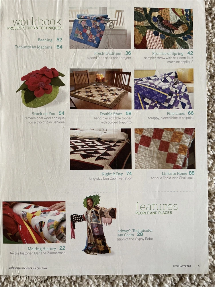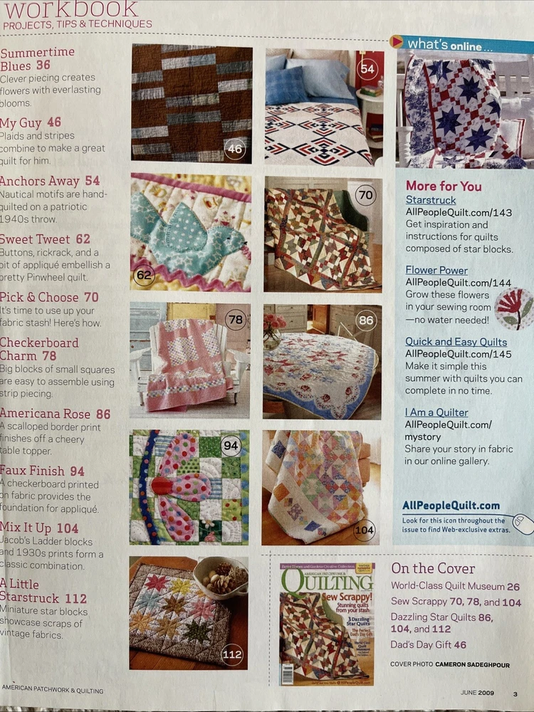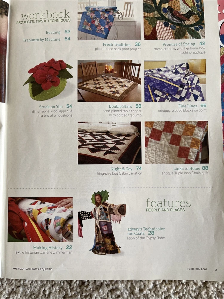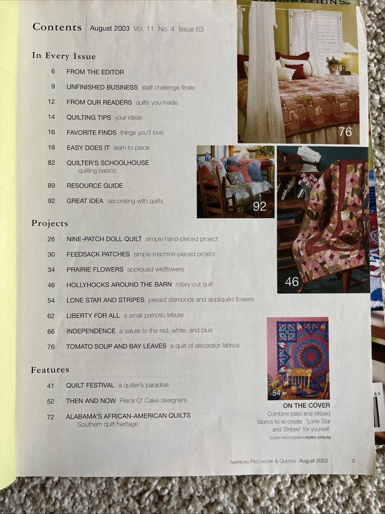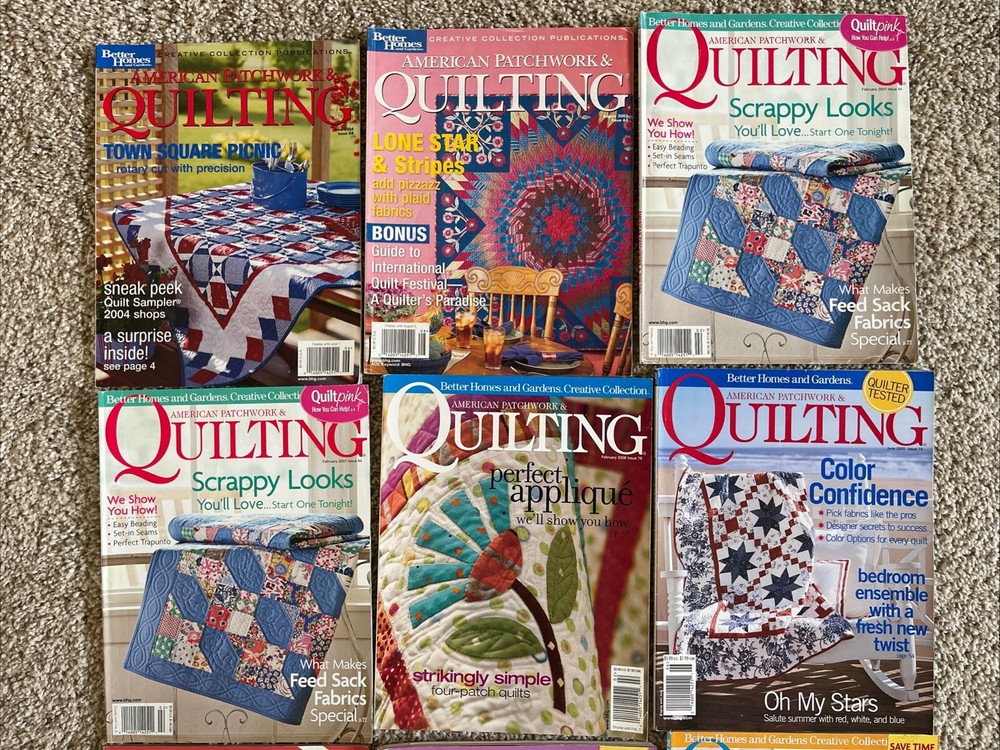 This lot of 12 American Patchwork & Quilting back issues from Better Homes & Gardens is a must-have for any quilting enthusiast. Each issue is packed with inspiration, tips, and techniques for quilters of all levels. The pages are adorned with beautiful and intricate designs, making it a joy to flip through and plan your next quilting project. With topics ranging from traditional pieced quilts to modern designs and appliqué, there is something for every quilter to explore and learn. The magazines are in great condition and come from a smoke-free home. Add these to your collection today! 2003-2011 Very nice condition. One duplicate Please see photos for more details as they are considered part of the description. Smoke free home I ship quickly and am happy to combine shipping for multiple purchases. Add items to your cart and "request total", then I will send an invoice with combined shipping Questions are welcome and encouraged. Check out my ebay store for more great treasures!