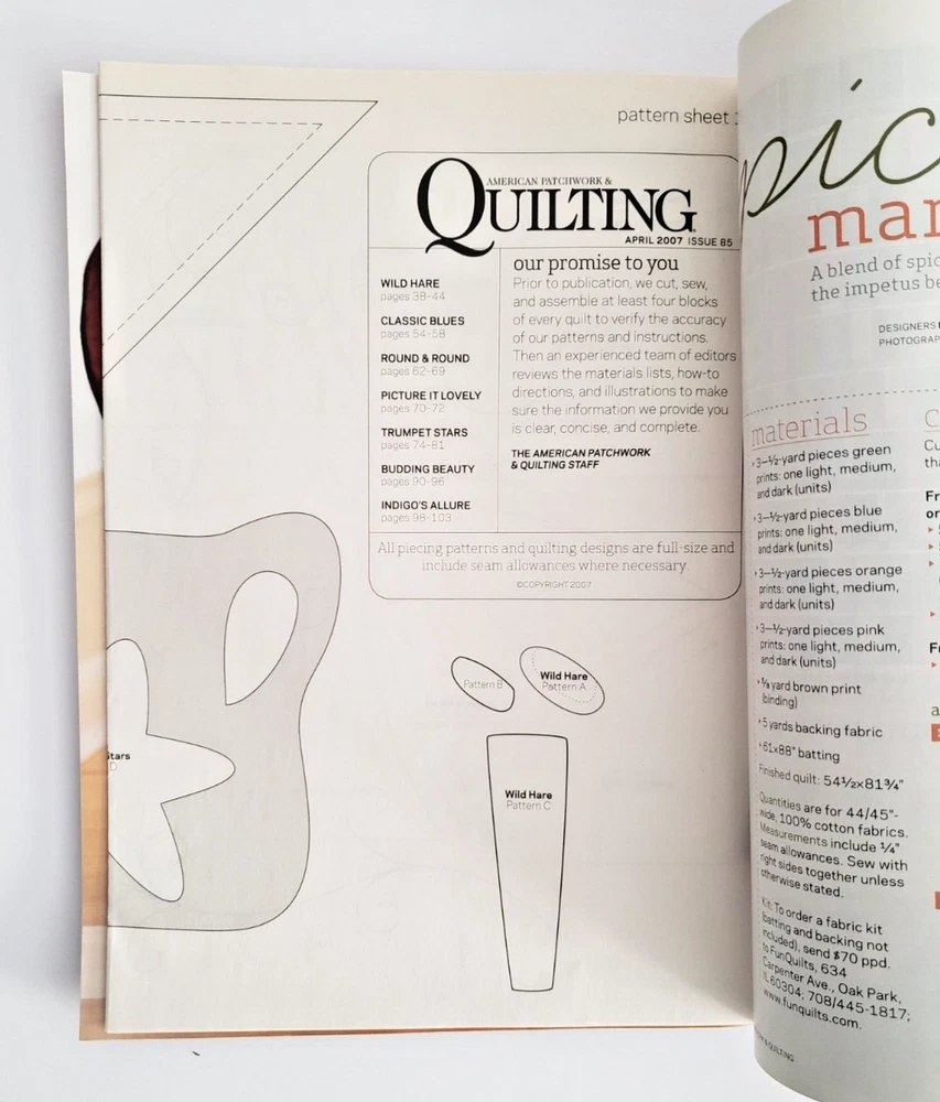 American Patchwork & Quilting Magazine 2006 - 2023 - You choose Month/Issue BH&G Most Issues have minimal wear to covers and spines. Please see photos of specific issues. Some issues have marks from removed address label. All pages intact. All project/patterns are intact and uncut. Please message for additional photos if needed. Price reflects condition. Message if interested in multiple magazine bundles. Lower cost shipping and purchase price available. Additional photos available. Questions are welcome. 30 Day Money Back Returns - Buyer Paid Return Shipping. Combined Shipping Available - Message to Combine Offers before Purchase. Buy It Now can be combined at Check Out by placing all items into Cart. Thanks for looking!