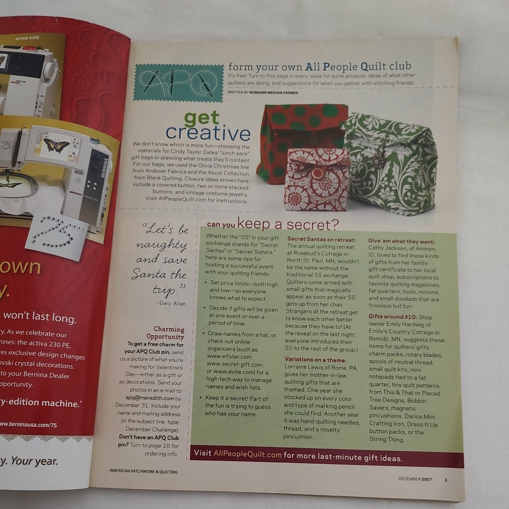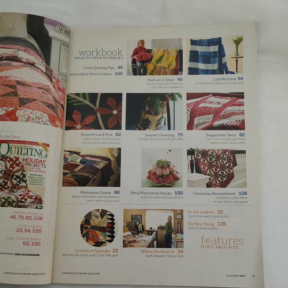 The "American Patchwork & Quilting Magazine December 2007" by Better Homes & Gardens is a publication focused on quilting, featuring various contributors and illustrated content. The magazine, published in English, caters to quilting enthusiasts with its December 2007 issue. With a genre centered around quilting, this magazine is a valuable resource for those interested in the art and craft of quilting, offering insights, inspiration, and instructional content within its pages.