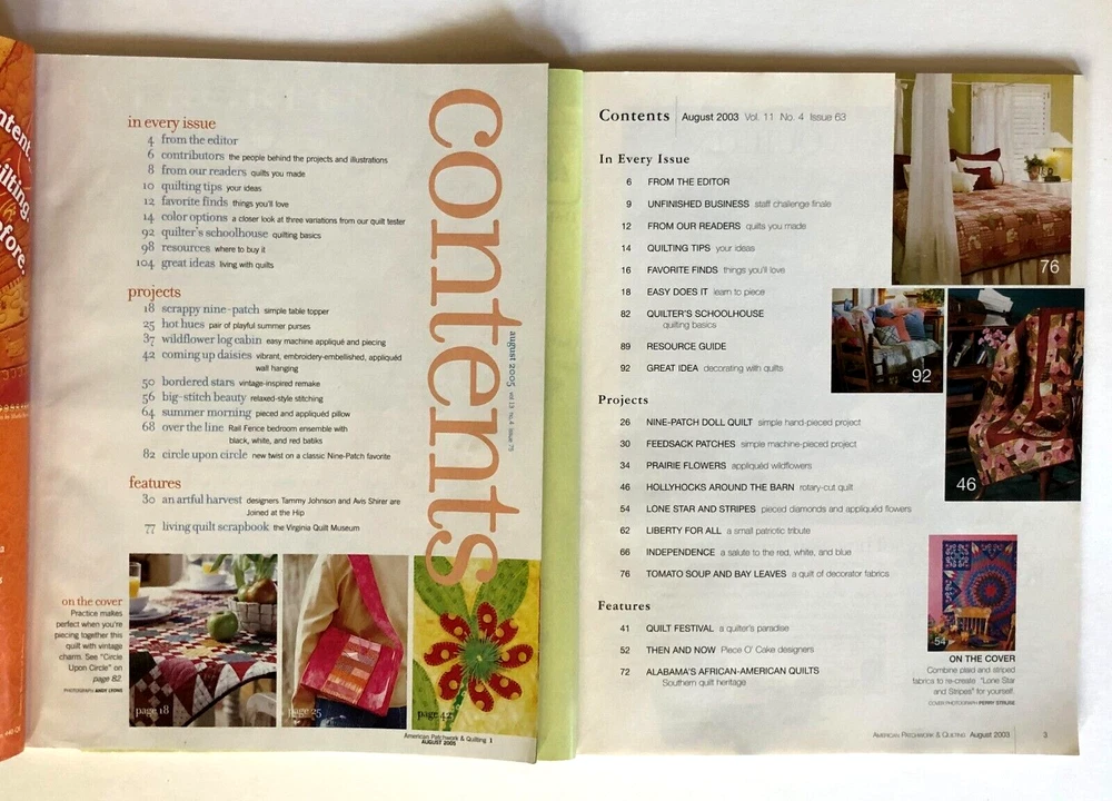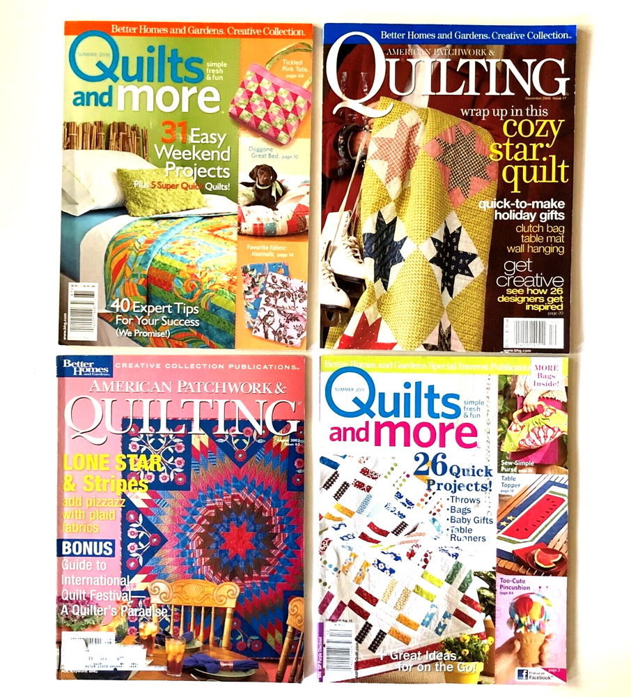 Vintage Lot of 7 American Patchwork & Quilting Magazines. Better Homes and Gardens publications. October 2001. Tropical Punch. March/April 2003. Wild Roses. Success with your sewing machine. August 2003. Lone Star & Stripes. August 2005. Perfect Curves. December 2005. Cozy Star Quilt. Summer 2006. 31 Easy Weekend Projects. Summer 2011. 26 Quick Projects. All magazines are very clean. Some covers have some handling wear. See Table of Contents for details. All items are expertly packaged for shipment. Shipped with tracking.