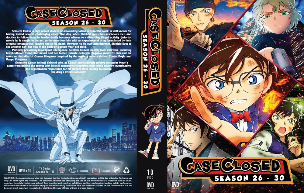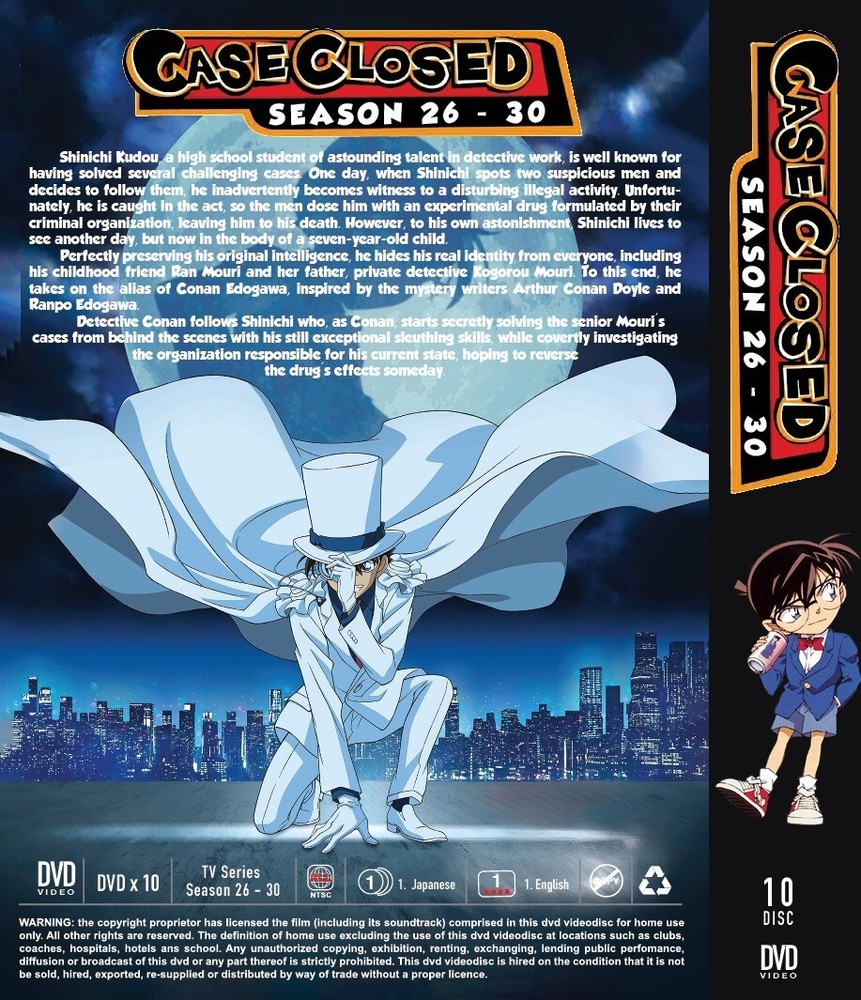 Title Name : Detective Conan Case Closed Complete TV Series Season 26-30 No Of Disc : 10 Disc Version : Japanese Subtitle : English Format : DVD / ALL Region *All Item Packed With Bubble Wrap *Return Accept on 14 days *Item sold are original with Malaysia Government Hologram
