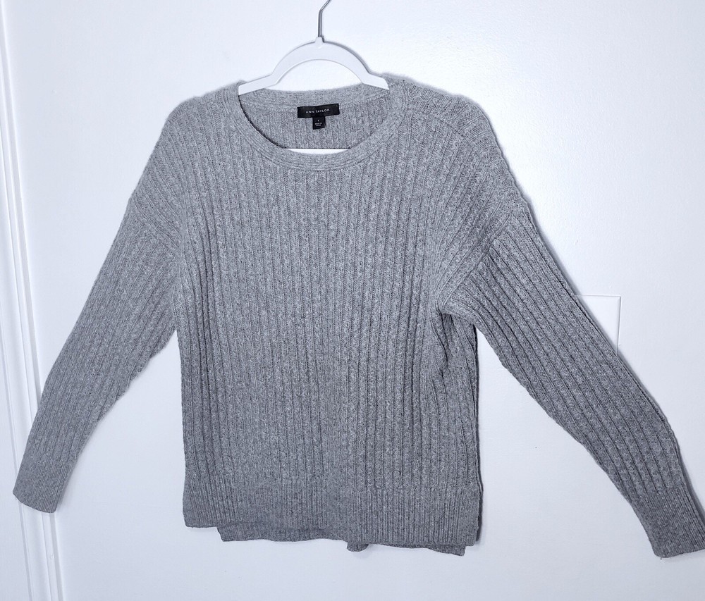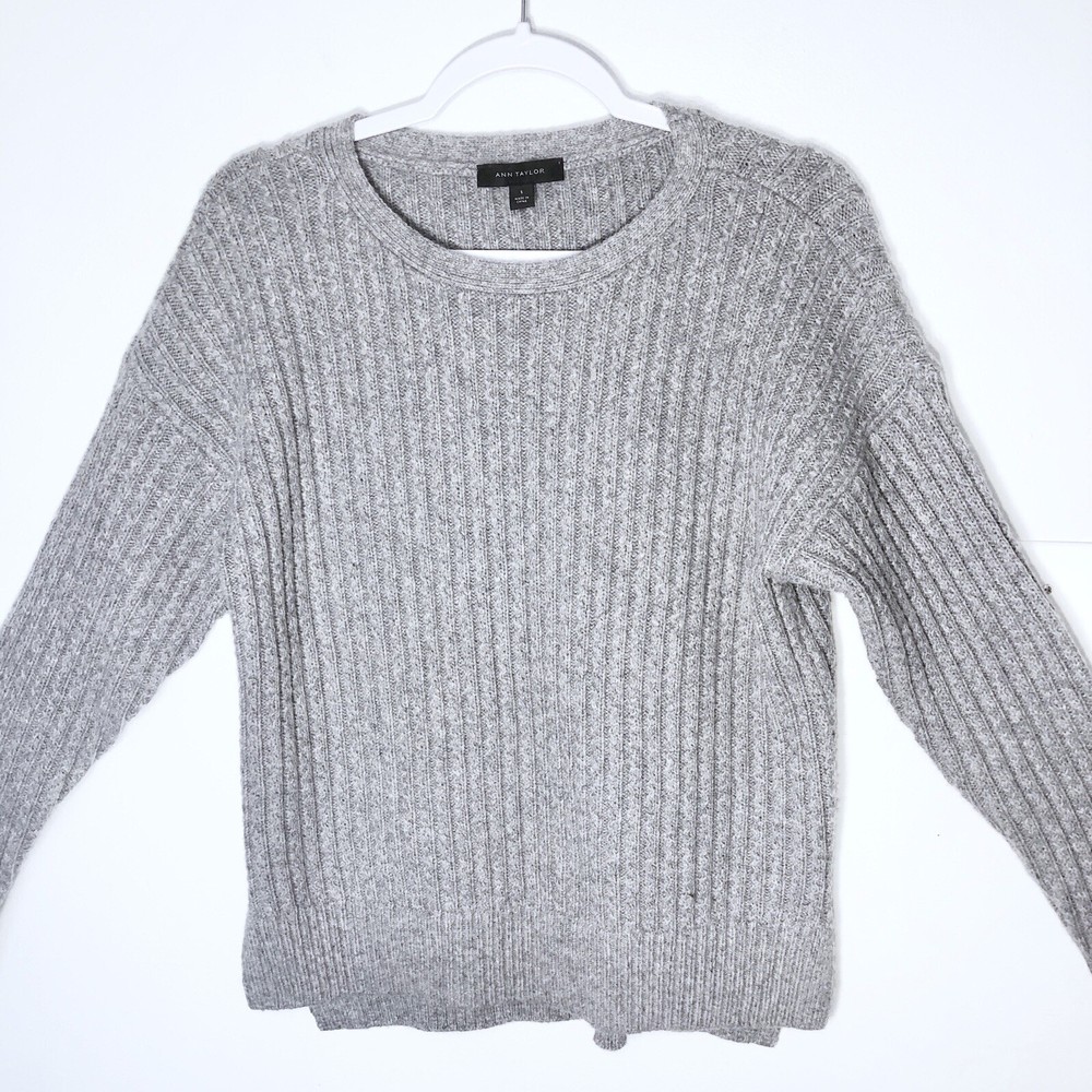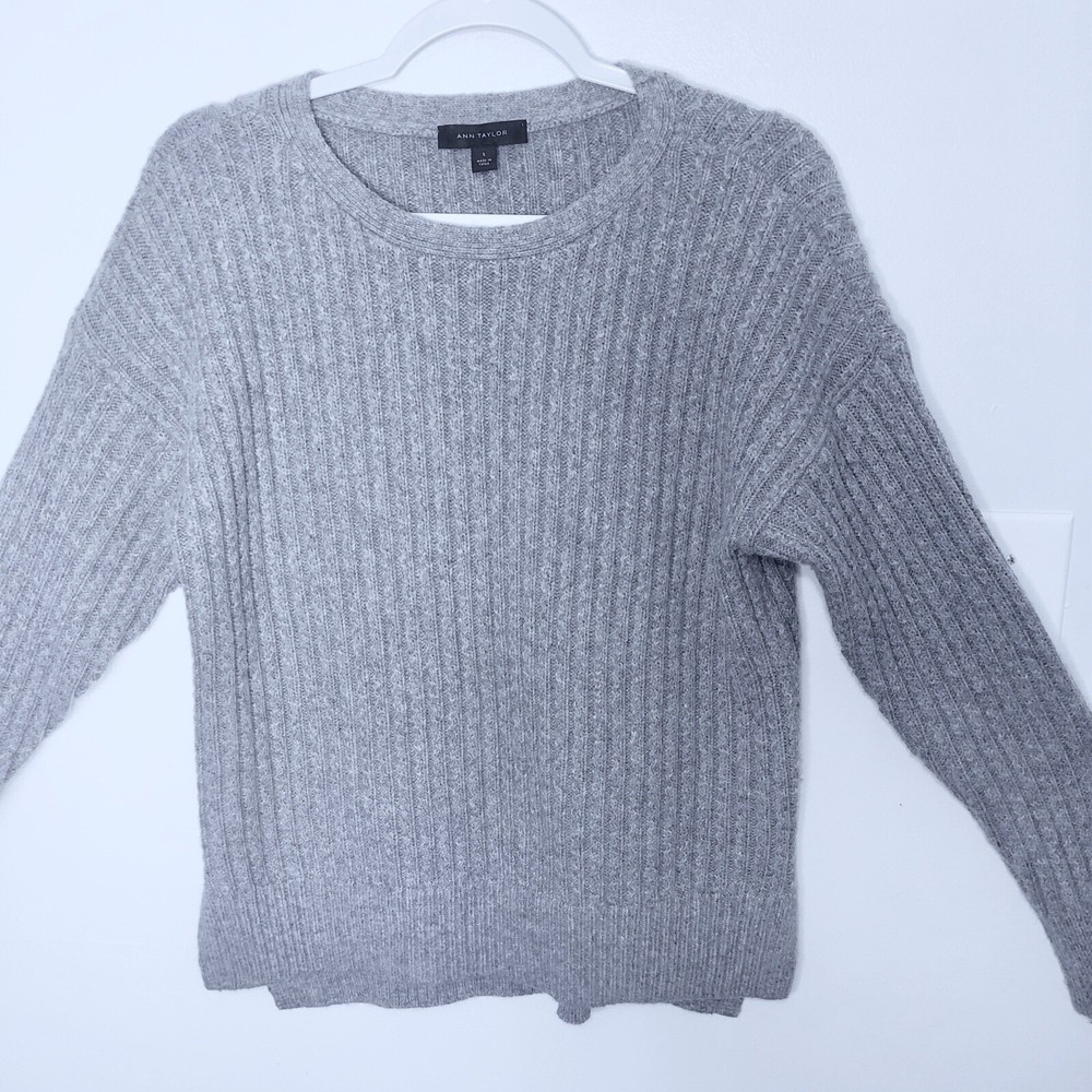 Ann Taylor Alpaca, Wool and nylon blend crew neck long sleeve,tight knit, cable knit sweater. Womens size small in a pretty light grey gray color. It’s so Soft, Warm, Thick and Cozy! *This item is pre-owned and in PERFECT condition! No holes, tears, stains, fading, pulls, pills or funky smells. *Measurement: Chest=40” Length=25” Arm length=19” *Message me with questions or more pics!