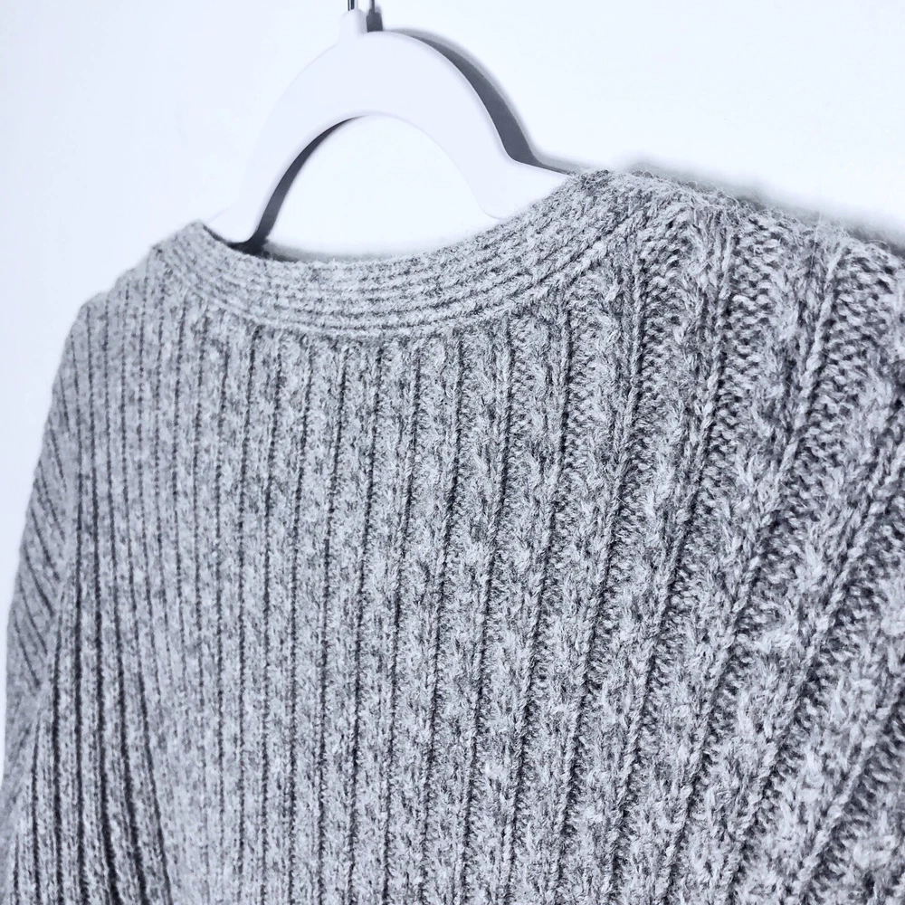 This sweater is incredibly soft and cozy—perfect for chilly days! The alpaca and wool blend keeps me warm without being bulky, and the light gray color is so versatile. The cable knit gives it a stylish, timeless look. Fits true to size and feels like new—no signs of wear at all. Love how thick and well-made it is while still being breathable. A fantastic find!