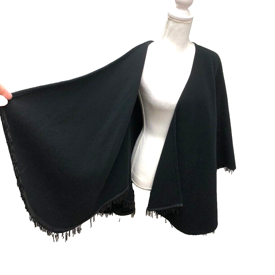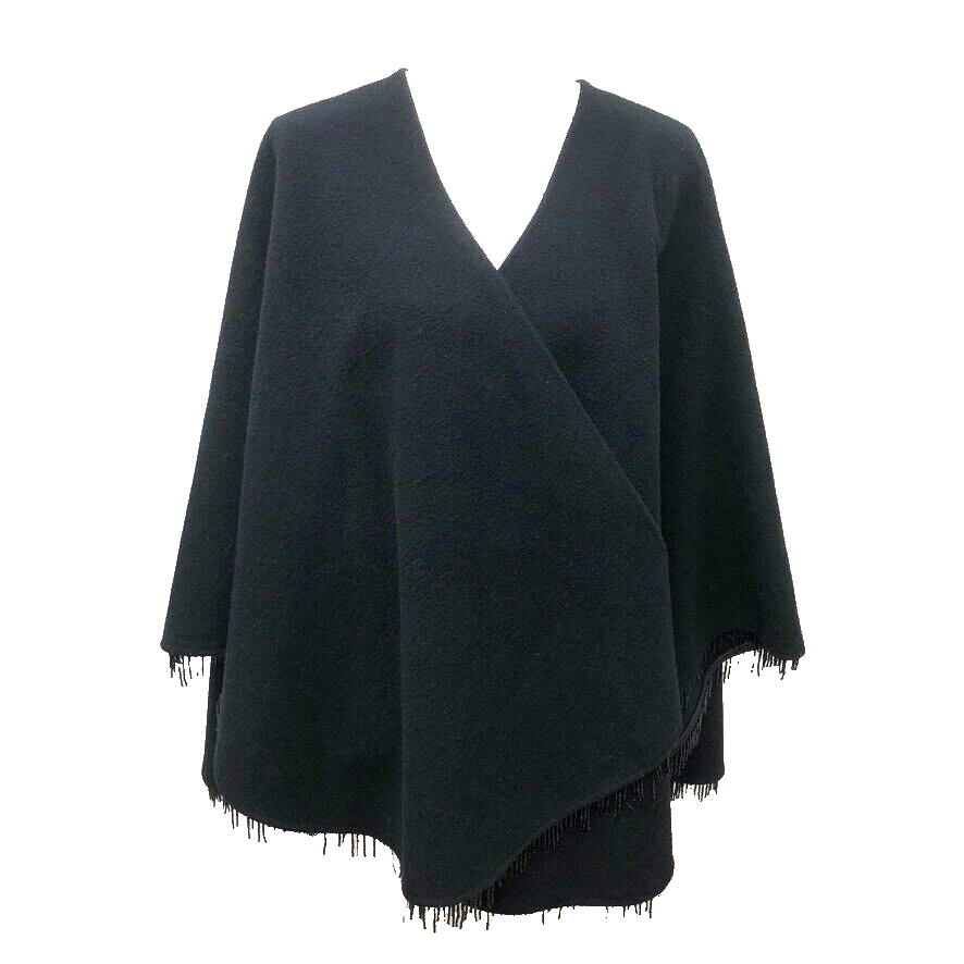 Annie Claire Boiled Wool Poncho Womens Lagenlook Style One Size Black Cozy Comfort Wear
