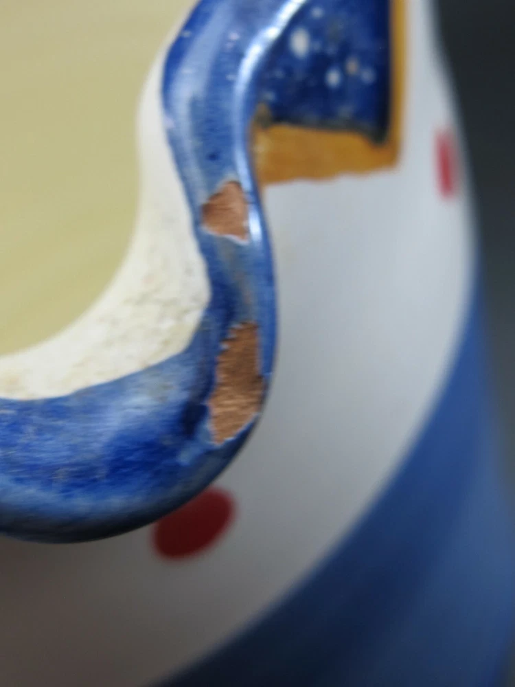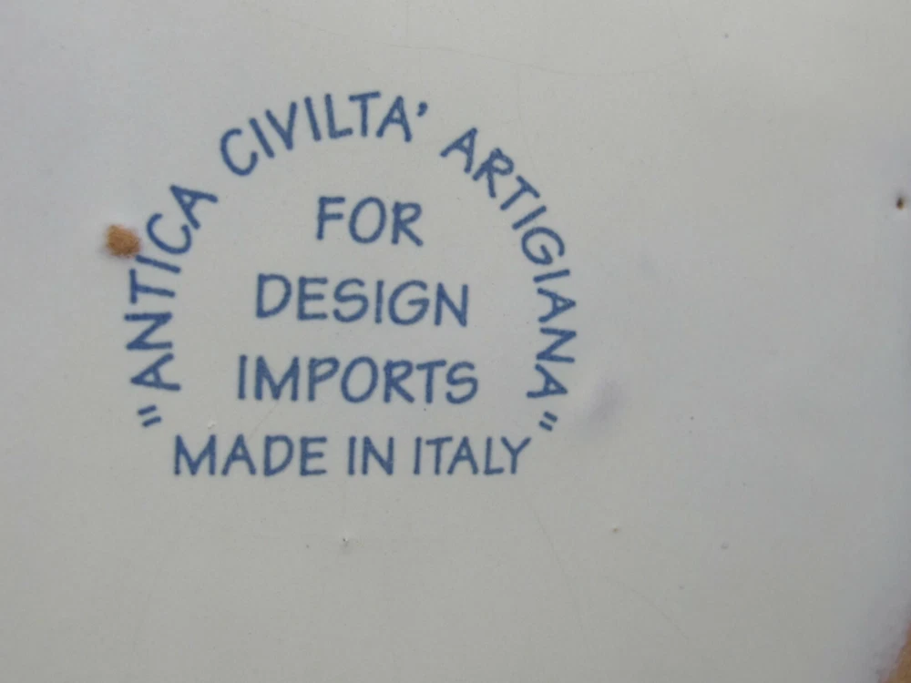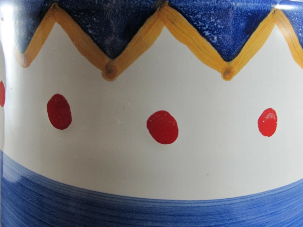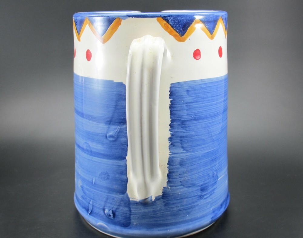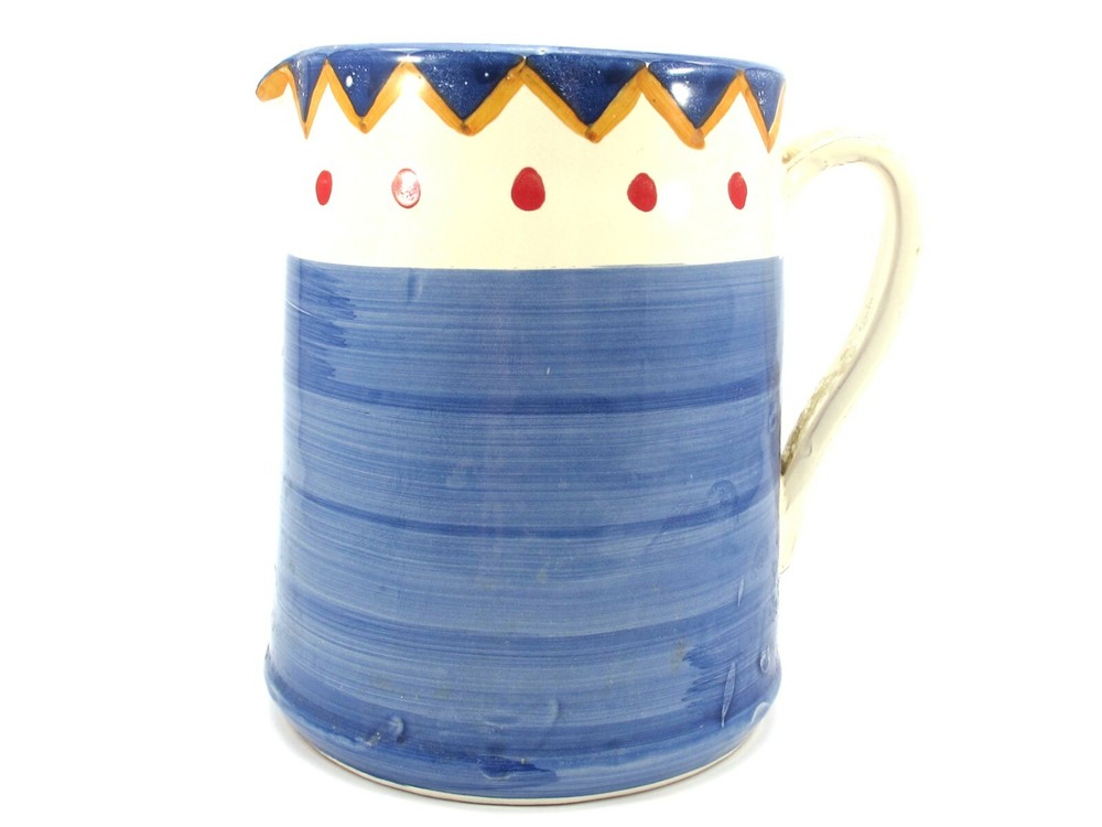 Charming Water Pitcher or Jug– Antica Civilta Artigiana Made in Italy Blue with paint strokes around White handle Red polka dots with yellow & blue zig-zag There is a chip on the spout Terrific for use or display 7 cup capacity 7” tall 7” handle to spout 6” diameter at base ***Thank you for looking!*** Please visit my Store, EVERYTHING DINING, to find many other Treasures. Stop by often and sign up for my Newsletter. Be sure to ask any questions before purchasing. § Please view all photos, item descriptions, and condition description as they are part of the description. § I represent items to the best of my knowledge – age, maker, pattern, etc. § Because of the odd shapes of many items, measurements are my best approximation. § Most items I sell are used, vintage coming from estate sales. Many will show some form of wear, scratches, or imperfections consistent with age and use. Unless they are listed as new, please keep this in mind when purchasing. I make every effort to list any condition issues in the item description. Every item is sold as is. SHIPPING § I ship USPS Priority Mail. § I will combine shipping when viable. Please ask before paying. § I do not automatically insert a packing slip to save on resources. If you need one, let me know. § I ship internationally via the Global Shipping Program (GSP). RETURNS & FEEDBACK § I offer 30 day returns. Items must be received by me in the same condition as sold. Please send me photos of any damaged items. § I send feedback to all of my buyers, but do not do so until the end of the transaction; after the buyer leaves me feedback. This way I know the buyer received the item and is happy with the purchase. § If you are not 100% satisfied with your item, please contact me directly so I can fix the issue before you leave negative or neutral comments.