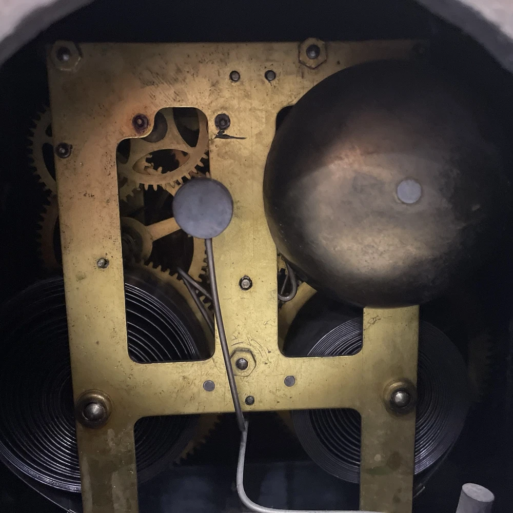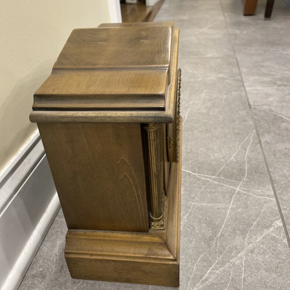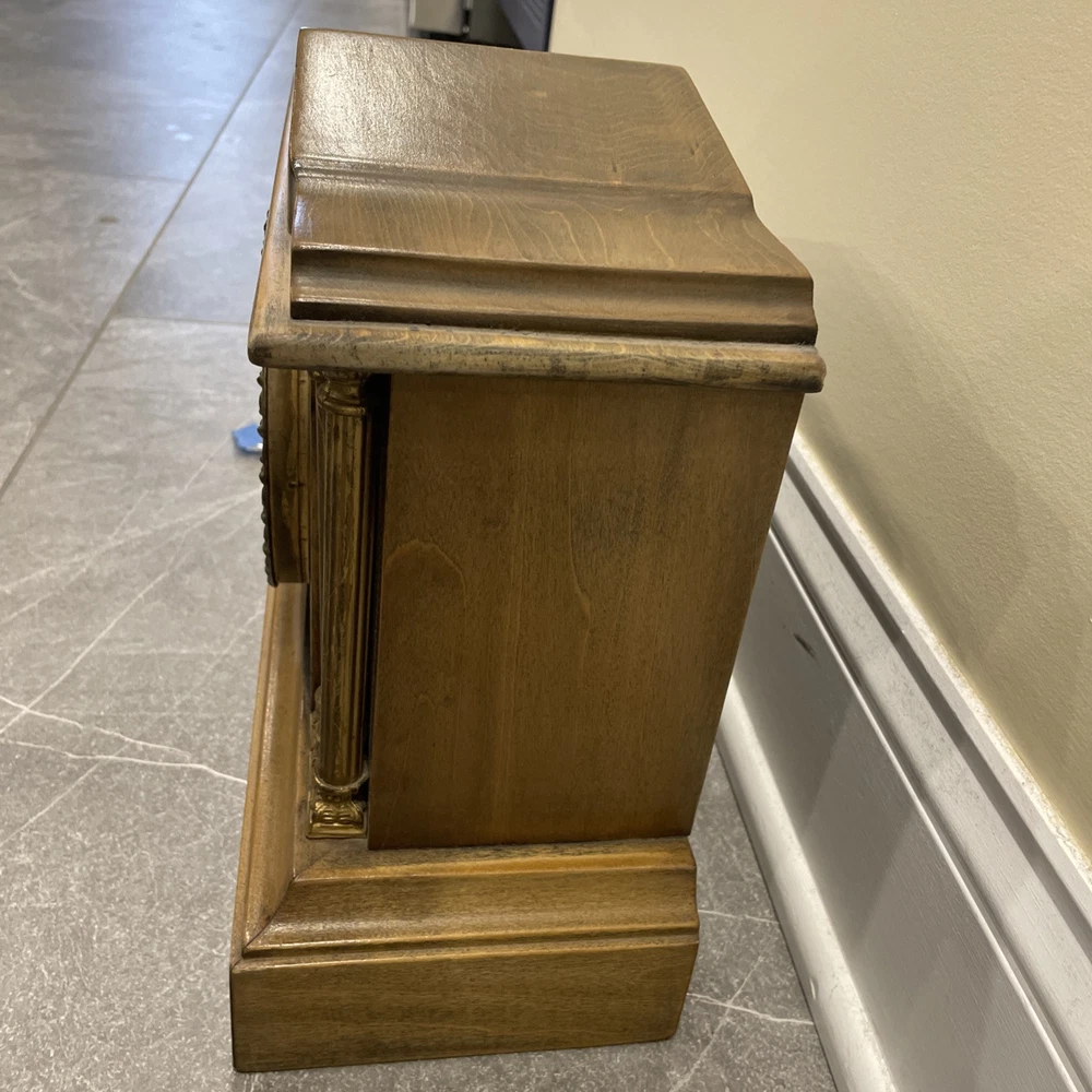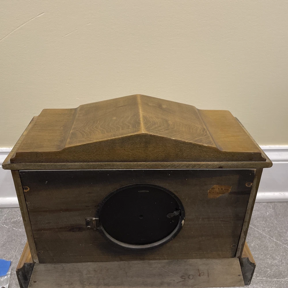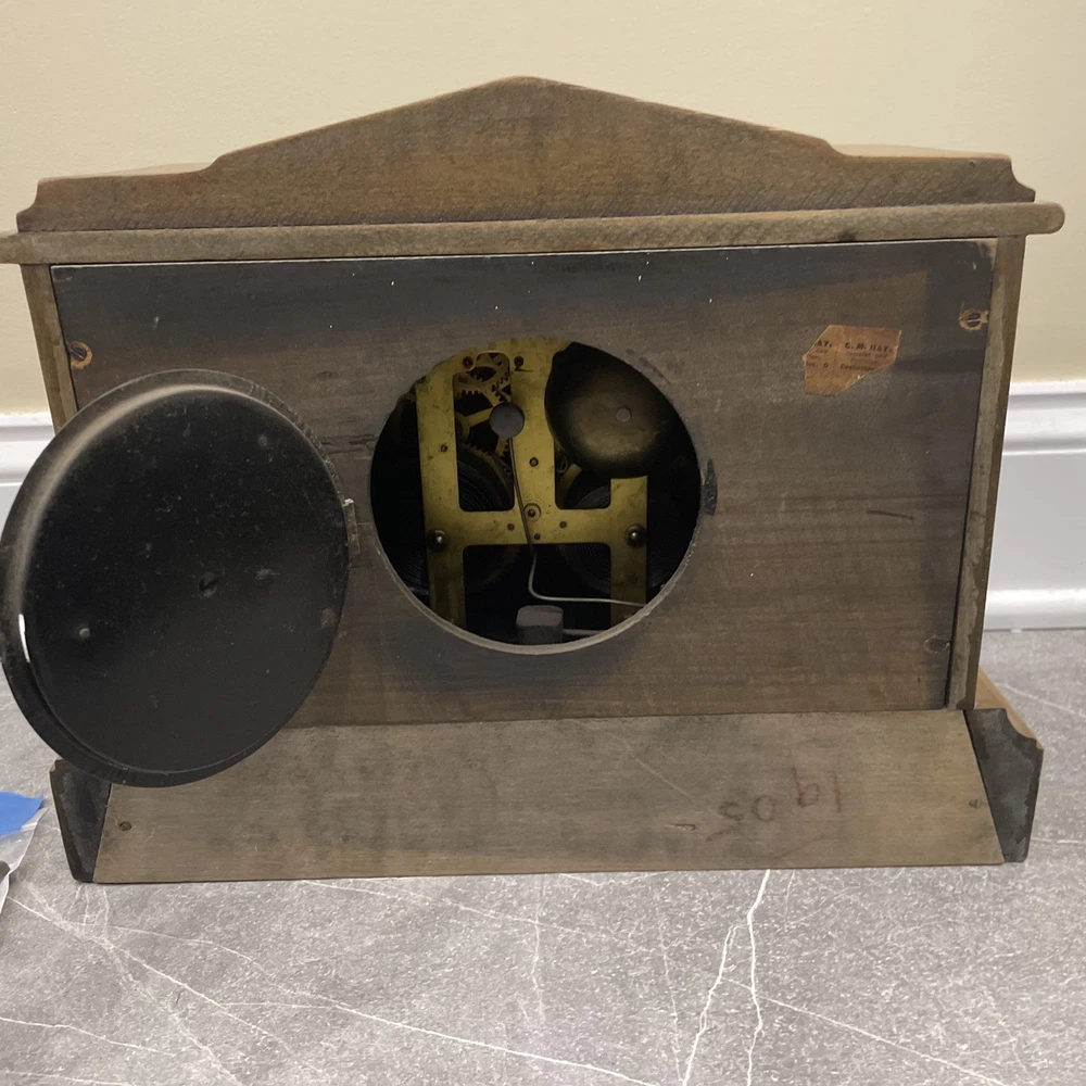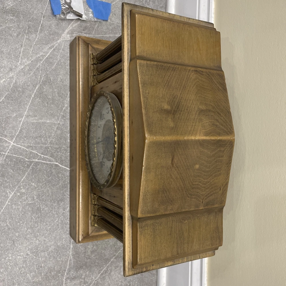 This antique E. Ingraham Co. mantle clock was manufactured in 1905 in Bristol, CT, USA. It features a rectangular shape with a wood finish and stands at 11.5 inches in height. This vintage clock is a key-wind mechanical unit with a winding key included, and it measures 14 3/4 inches in length and 5.75 inches in width. The clock embodies an Edwardian style and is adorned with brass and glass materials, making it a unique and collectible piece ideal for any room. See photos for all details.