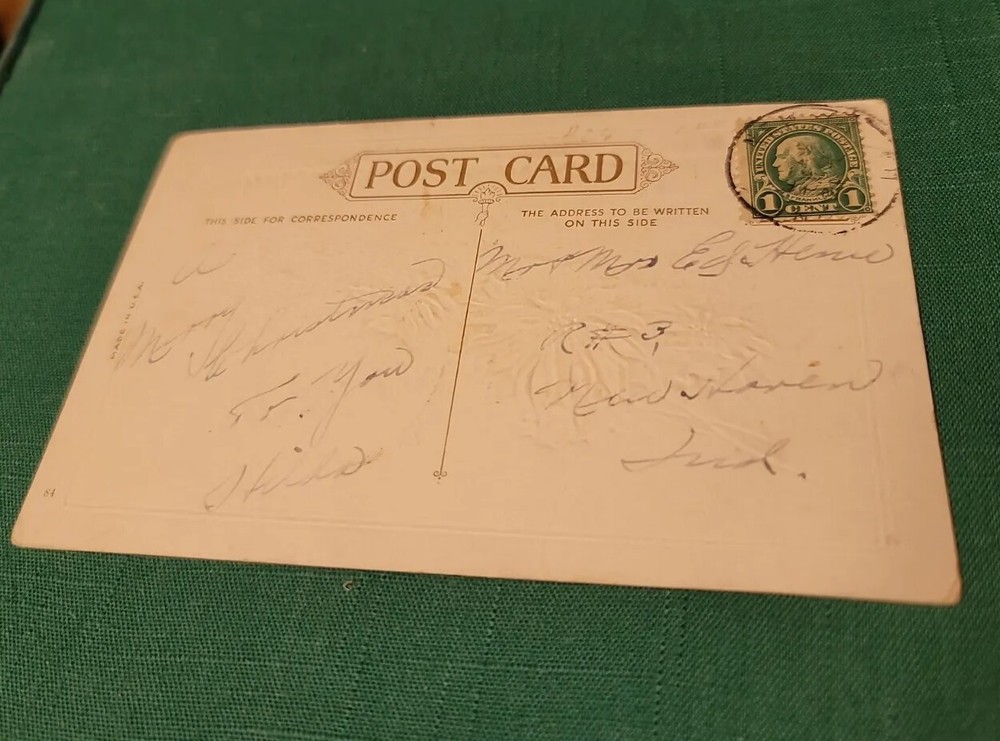 Add this Antique Christmas Postcard to your collection! Featuring Antique Christmas Postcard. Has surface wear on top, front and edges. Measures 5 1 /2" x 3 1/2" Sold In Used Condition. Please ask all questions before bidding. All Sales Final. Payment must be made in 4 days. Buyer required to pay all shipping Costs- All Original Delivery Fees and Any Returns. Shipping sent USPS Mail. Will ship when funds clear usually within three business days. May God Bless You and Your Family. God Bless America