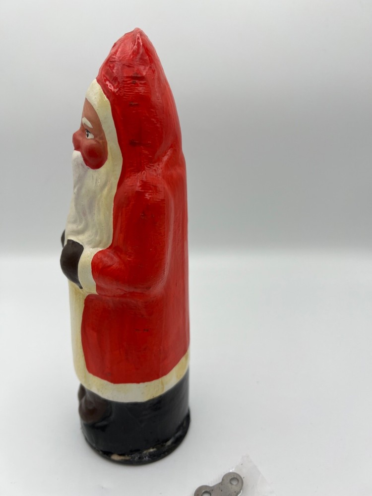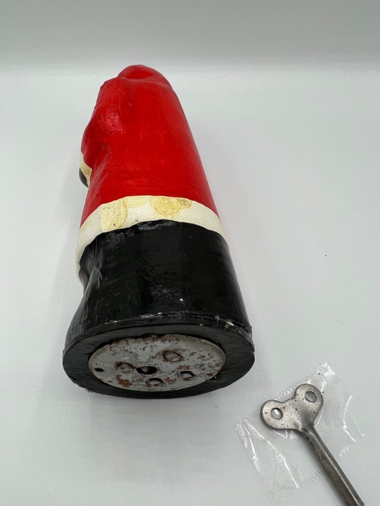 Antique Wind Up Dancing Santa Belsnickle. Comes with key and working well, please see video. When wound, Santa spins around. So cute!! Good condition with normal wear and a few yellowing spots on the ...