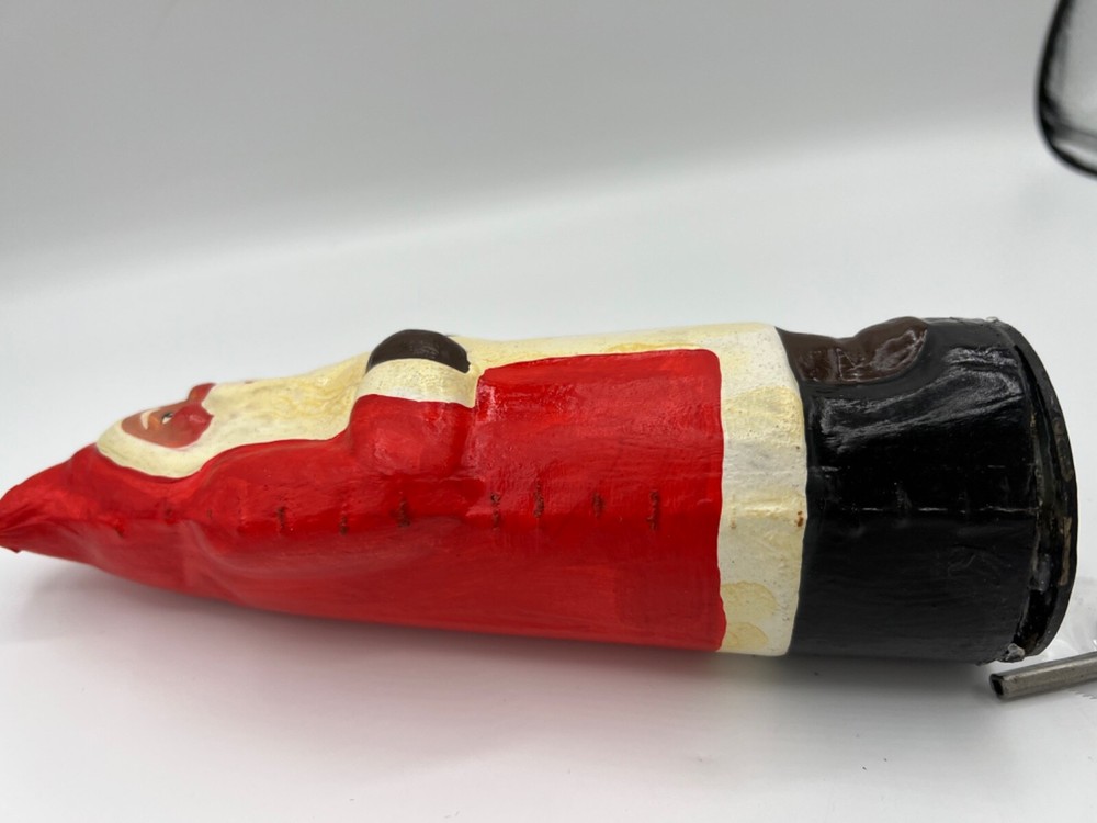 Antique Wind Up Dancing Santa Belsnickle. Comes with key and working well, please see video. When wound, Santa spins around. So cute!! Good condition with normal wear and a few yellowing spots on the white. Please see pictures.
