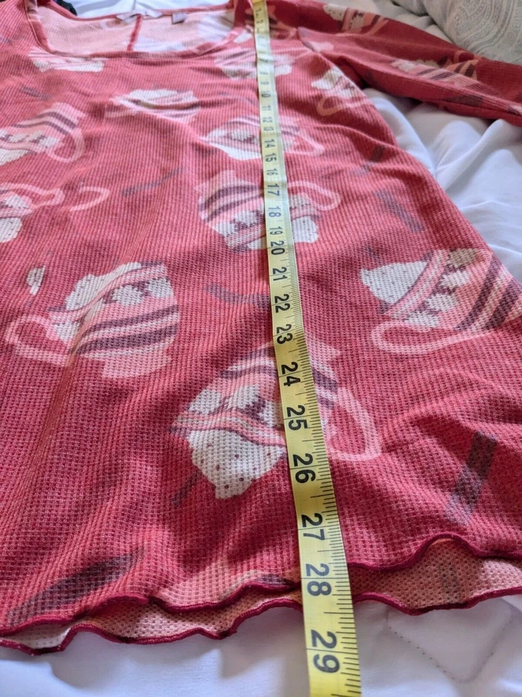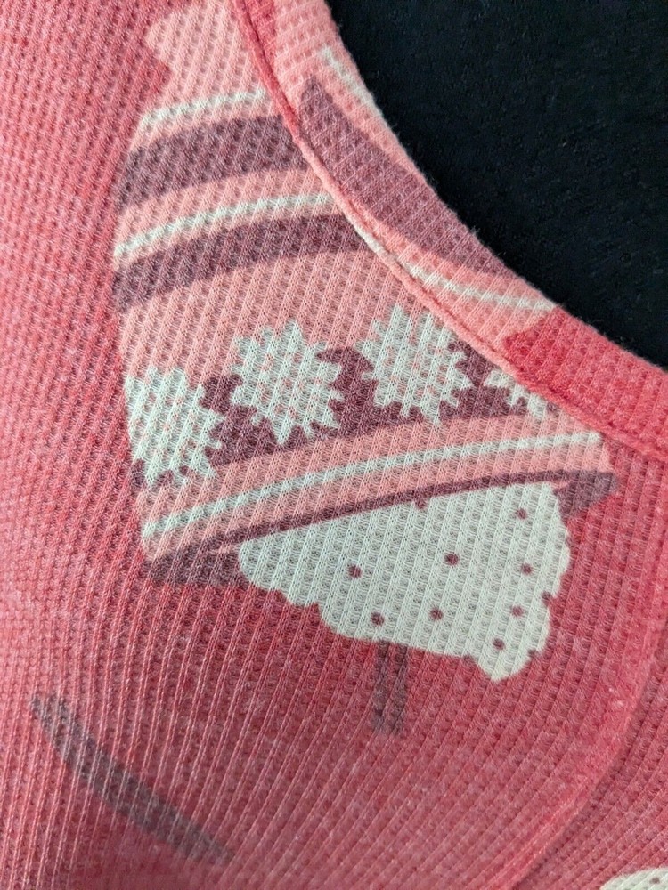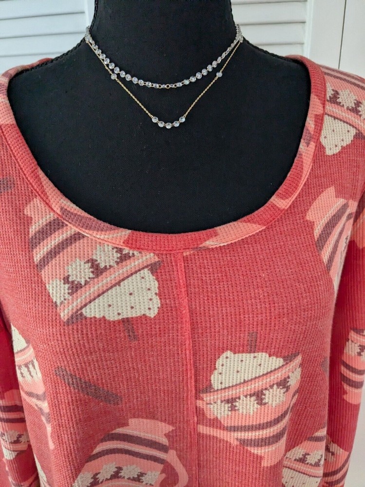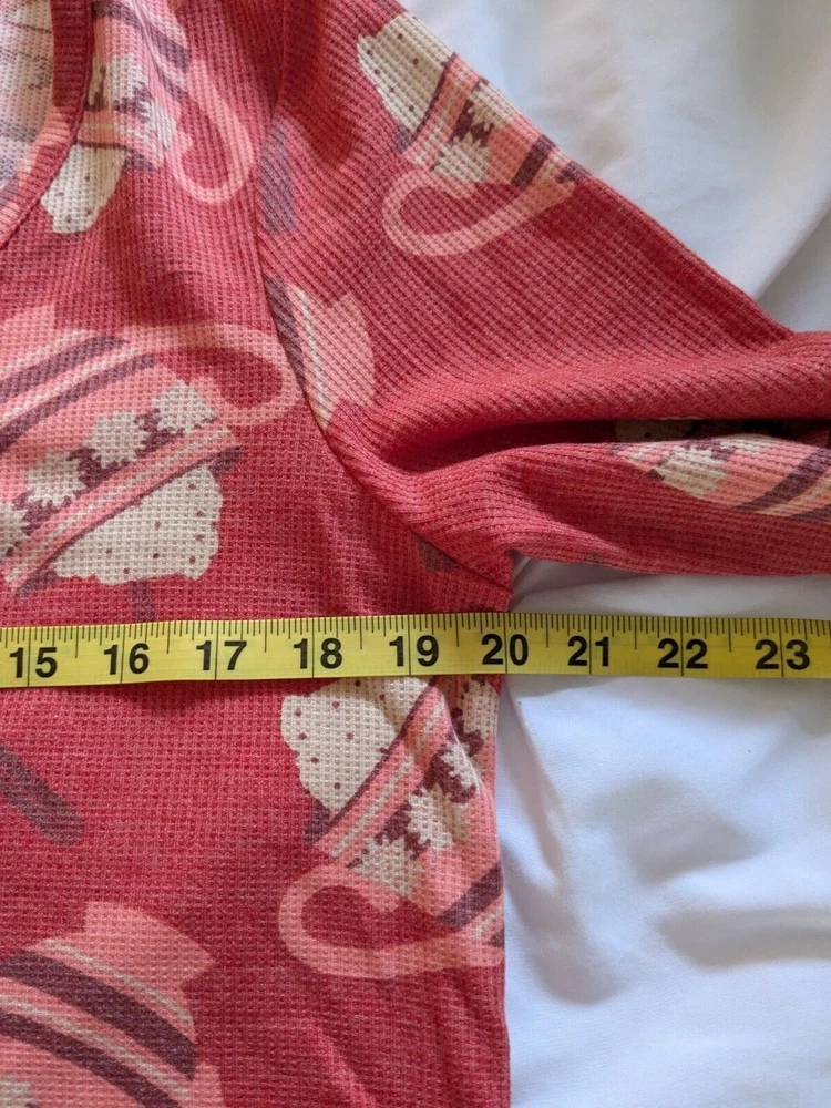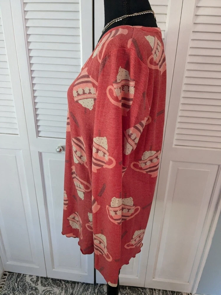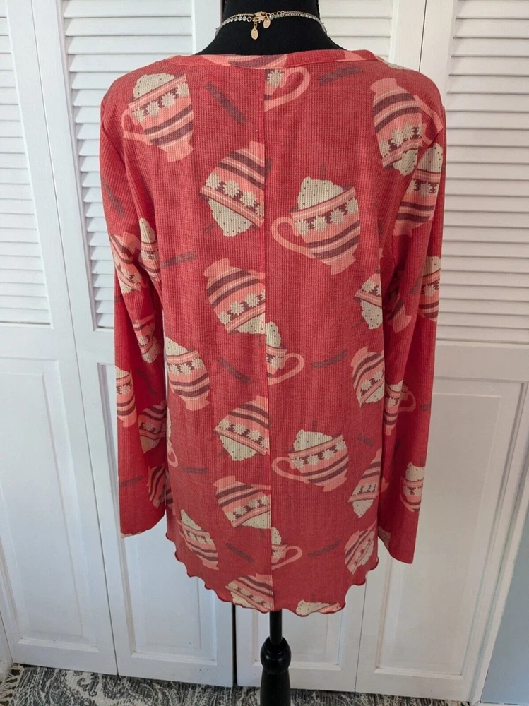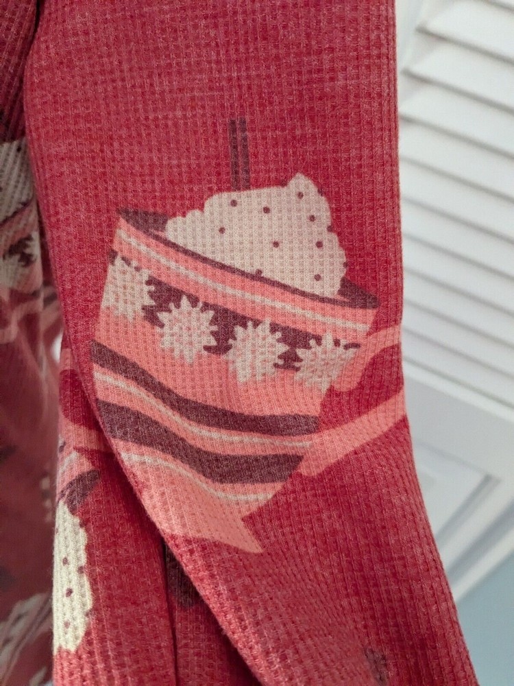 This pajama top is unbelievably soft and cozy—perfect for curling up with hot cocoa on chilly nights. The waffle weave fabric is lightweight yet warm, and the festive cocoa mug print adds a fun holiday touch. The relaxed fit and scoop neck make it super comfy for lounging or sleeping. Washes well and stays soft. A must-have for winter!