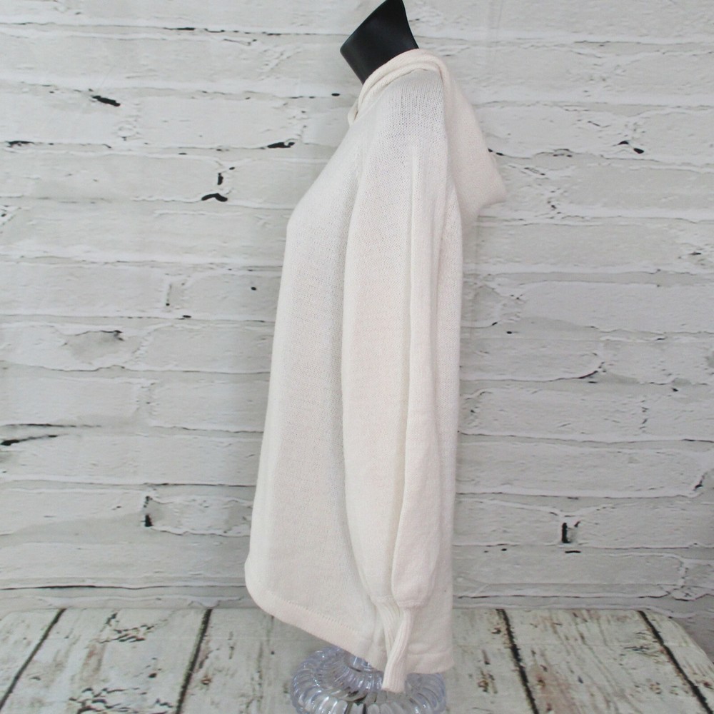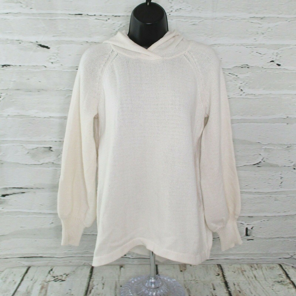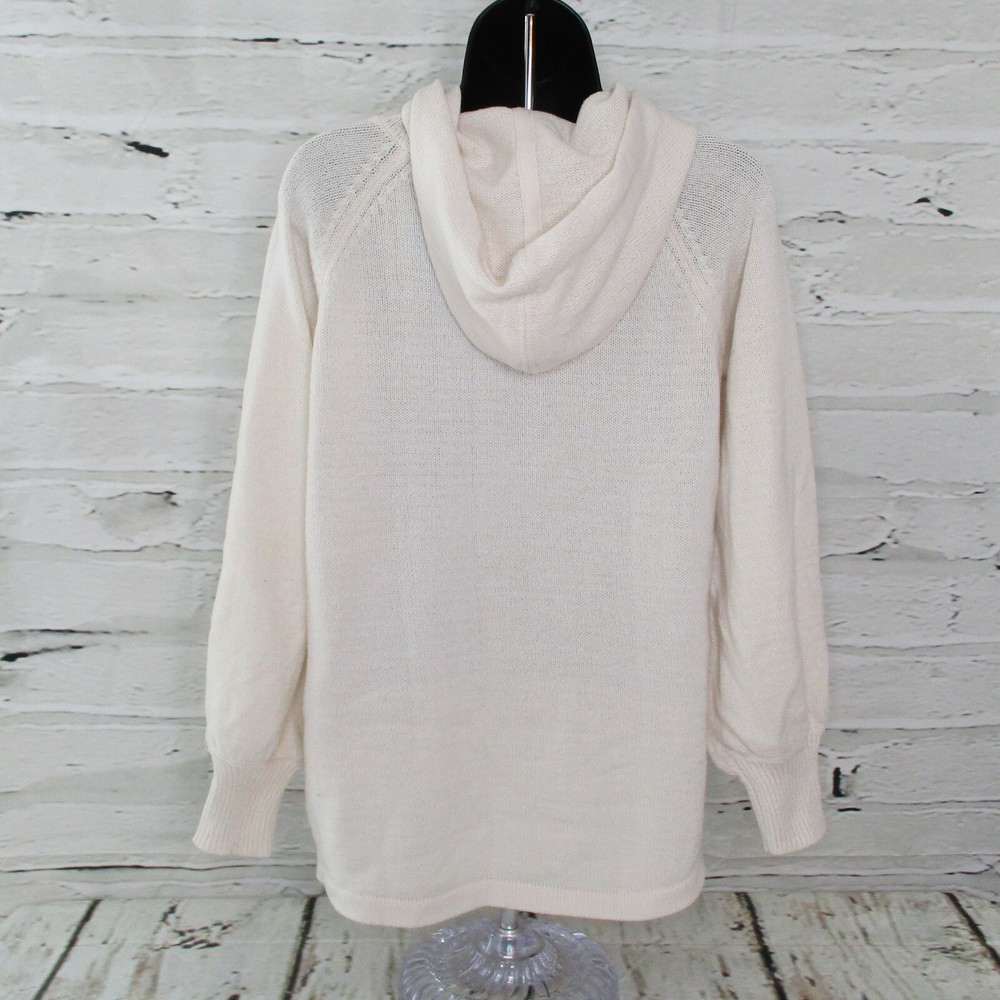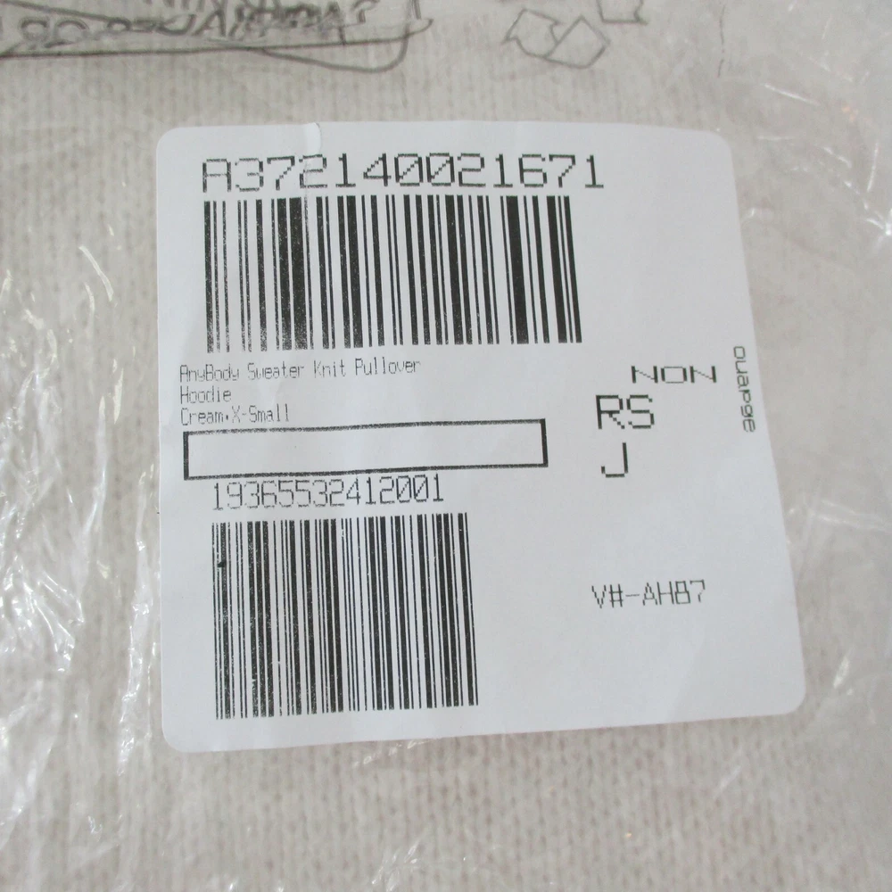 AnyBody Women's Cozy Knit Pullover Hoodie Sweater Size: XS - Relaxed Fit Approximate Flat Measurements: Bust 19", Total Length 24", Sleeves 24" 100% Polyester Colors: Cream Oversized Hood Hi-Lo, Rounded Hem Ribbed Cuffs Soft and Cozy MSRP $54 as featured on QVC Perfect for Any Occasion and Everyday Wear Any Questions, Please ask - We are Happy to Answer We Will Ship Internationally