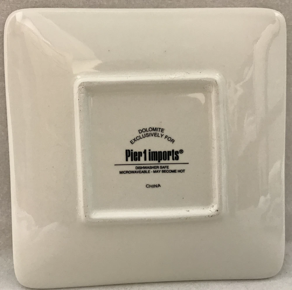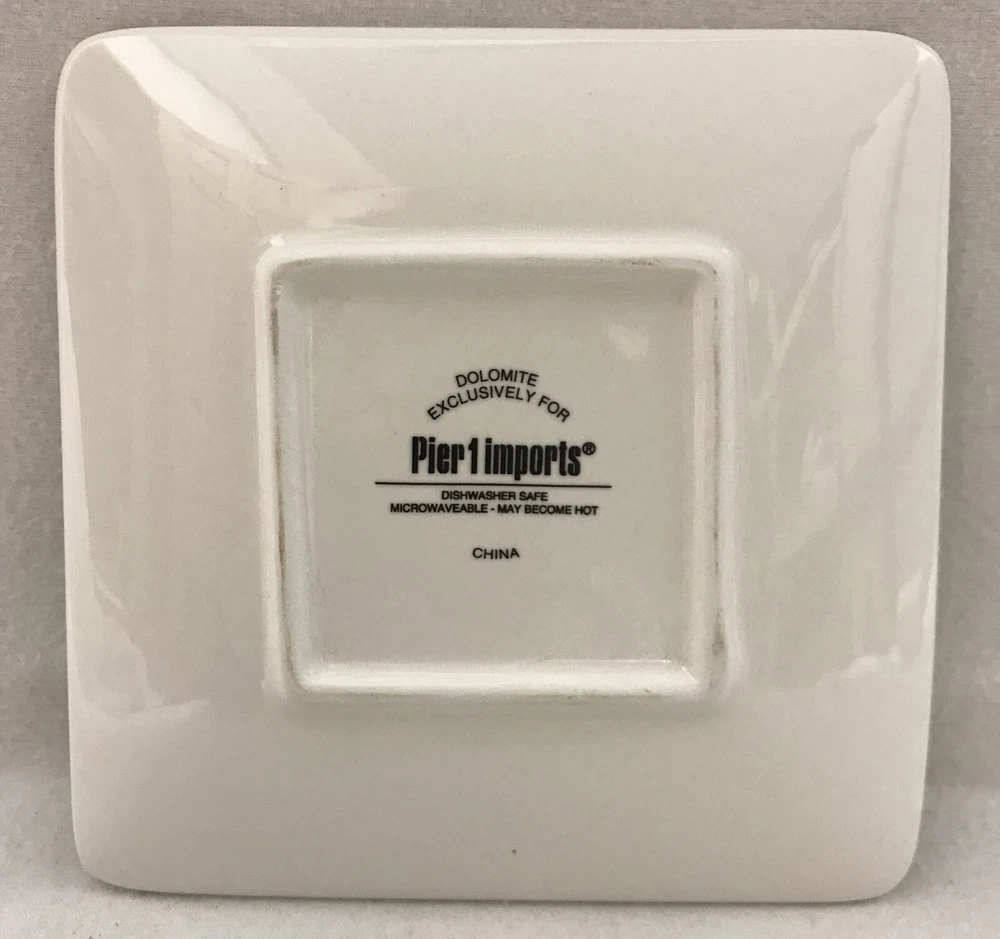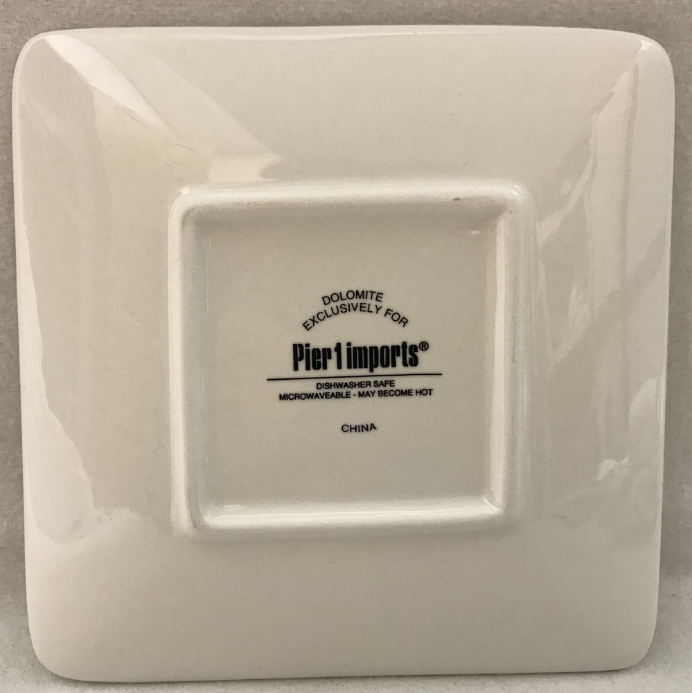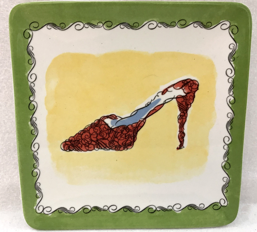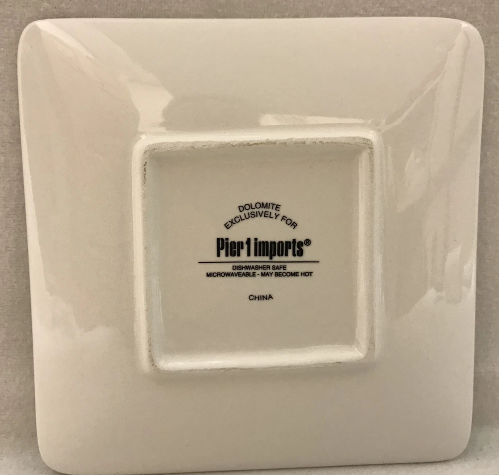 Pier 1 Imports "Apparel Appetizer Plate Set" Set of 4 Earthenware Luncheon/Appetizer Plates Each Plate Has a Unique Apparel Design With A Green Border Including: Dress - Hat - Shoe - Purse All Made of Squiggly Art Drawings The plates measure approximately: 6" Square They are in the original box - unused. They are Dishwasher Safe but May Become Hot in Microwave Oven Made in China Check out my pictures and message me with any questions! SHIPPING CHARGES ARE QUOTED FOR LOWER 48 STATES USA ONLY. For shipping to Alaska, Hawaii and Puerto Rico, please message me requesting shipping cost. Thanks for looking and have a Great Day! 65961 KFL 4182