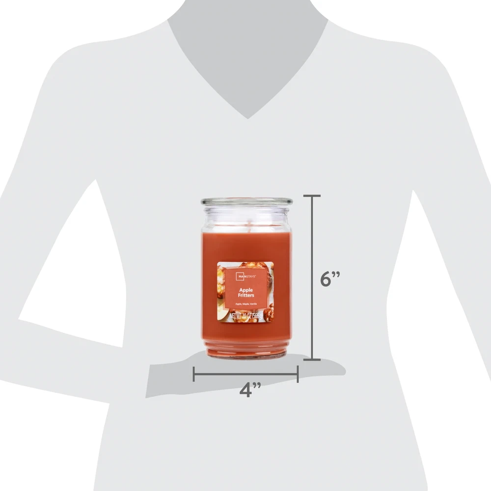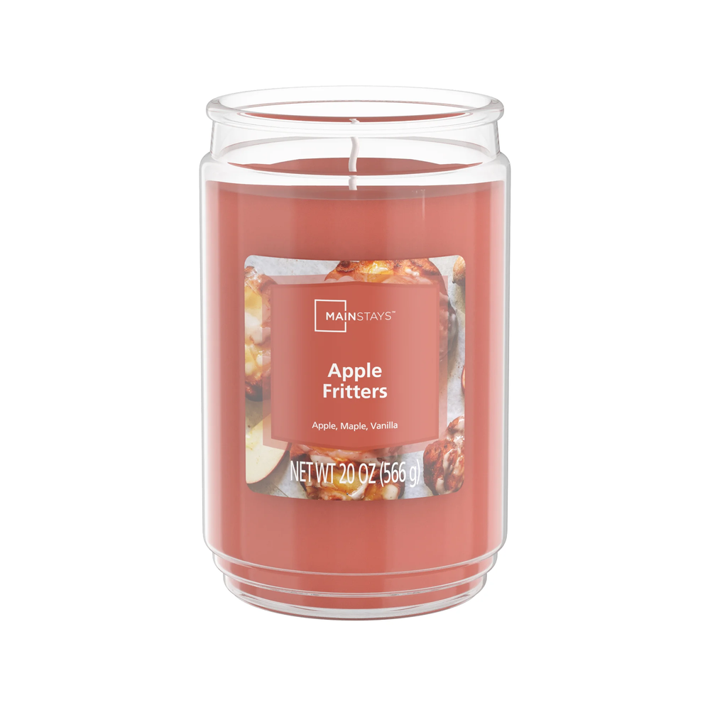 Introduce a soothing aroma into your living space with the Mainstays Apple Fritters Scented Single-Wick Glass Jar Candle. Mainstays scented candles are highly fragranced and provide a clean and even burn that will fill your home with beautiful and enticing seasonal aromas. Place this candle in the kitchen, living room or dining room where you can enjoy it when entertaining guests or anytime you want to relax. Trim the wick periodically to promote even burning. Mainstays offers a wide selection of candle scents to explore and enjoy. Shop all of our Mainstays scents online and in-store. Treat yourself to the enticing scent of the Mainstays Apple Fritters Scented Single-Wick Glass Jar Candle. Mainstays Apple Fritters Scented Single-Wick Glass Jar Candle, 20 oz fragrance notes of apple, maple, and vanilla Disperses delightful fragrances of the holiday season throughout your home with Mainstays seasonal scented candles These candles are made with premium-grade wax, clean-burning, and highly fragranced Mainstays offers a wide selection of candle scents to explore and enjoy 20 oz. single-wick candle burns for approximately 100-120 hours Features a decorative beveled edge glass vessel. Mainstays single-wick scented candles are highly fragranced, and provide a clean and even burn that will fill your home with beautiful and enticing aromas Our candles are made from high quality, non-toxic, clean-burning wax that is specifically developed to hold optimal fragrance loads Mainstays Apple Fritters Scented Single-Wick Glass Jar Candle, 20 oz Irresistible notes of fried fritter pastries gleam with deliciously sweet accents of cinnamon-dusted apples swirled with nutty pecans, scrumptious vanilla maple, and pure drizzles of creamy white sugar glaze Complements virtually any room decor 20 oz. single-wick candle burns for approximately 100-120 hours Features a decorative beveled edge glass vessel Mainstays single-wick scented candles are highly fragranced, and provide a clean and even burn that will fill your home with beautiful and enticing aromas Our candles are made from high quality, non-toxic, clean-burning wax that is specifically developed to hold optimal fragrance loads Our Mainstays 20oz candle is available in a variety of scents