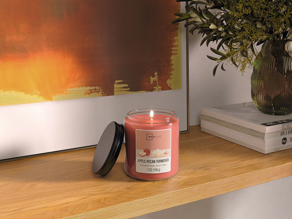 Introduce a soothing aroma into your living space with Mainstays candles. Mainstays scented candles are highly fragranced, and provide a clean and even burn that will fill your home with beautiful and enticing seasonal aromas. Place this candle in the kitchen, living room or dining room where you can enjoy it when entertaining guests or anytime you want to relax. Trim the wick periodically to promote even burning. Mainstays offers a wide selection of candle scents to explore and enjoy. Shop all of our Mainstays scents online and in-store. Mainstays 7 oz. Apple Pecan Single-Wick Candle Apple Pecan features fragrance notes of cinnamon apple, pecan, and pastry. The single-wick design provides just the right amount of illumination in a sleek and modern design with a black screw top lid The scent of this candle allows for a relaxing environment without becoming overpowering Helps improve concentration, mood, and positive thinking Mainstays single-wick scented candles are highly fragranced, and provide a clean and even burn that will fill your home with beautiful and enticing aromas Our candles are made from high quality, non-toxic, clean-burning wax that is specifically developed to hold optimal fragrance loads Our Mainstays 7oz candle is available in a variety of scents