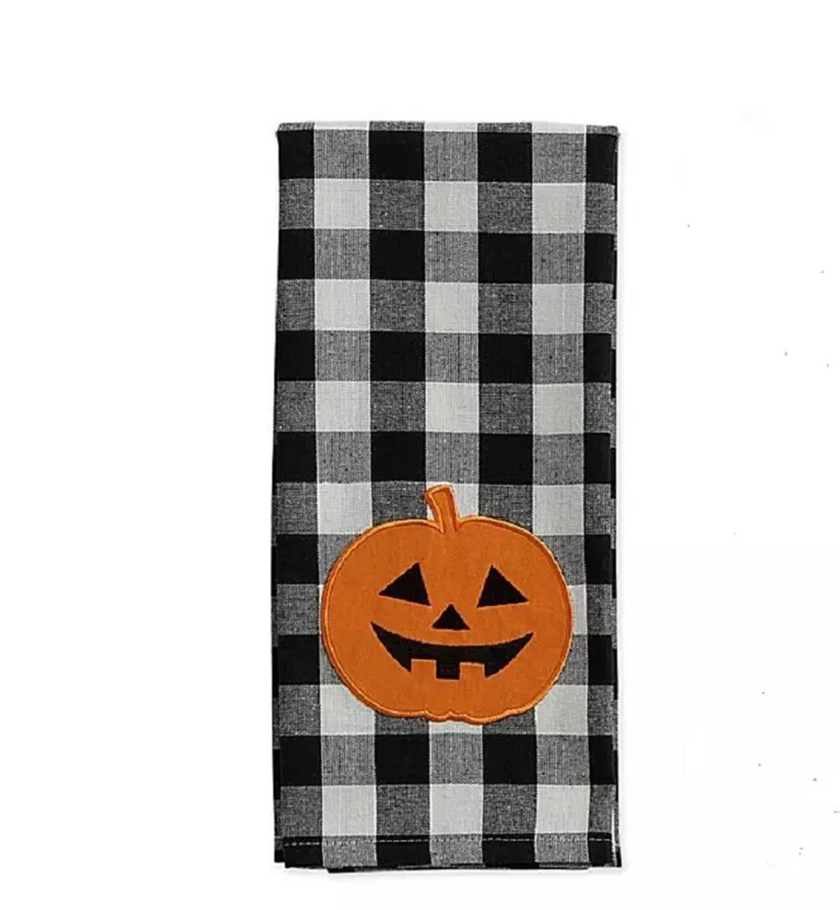 The towel is black and white check with pumpkin embellishment. A fabric strap is attached to a corner on the back of the towel so that it can be hung from a peg, hook, or knob. The towel is 100% flat woven cotton and 18" x 27.5". The towel is from Design Imports collection. INTERNATIONAL BUYERS PLEASE NOTE: Import duties, taxes, and charges are not included in the item price or shipping charge. These charges are the buyer's responsibility. Please check with your country's customs office to determine what these additional costs will be prior to bidding/buying. RETURN POLICY: We want our customers to be happy with their purchases from My Farmhouse Mercantile. Returns are accepted when the merchandise is returned in the original/same condition as received including in the manufacturer's packaging and tags attached. The merchandise cannot be used or laundered. All returns must be authorized and returned within 30 days. SALES TAX We are required to collect a 6% sales tax from Florida residents. WE SO KINDLY THANK YOU FOR VISITING OUR EBAY STORE!!