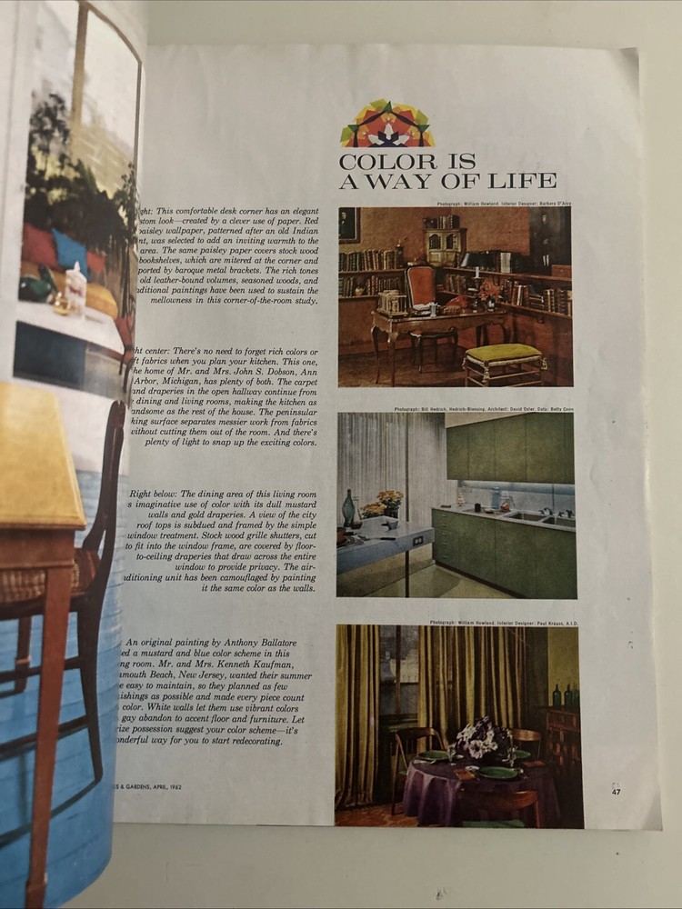 The product is the April 1962 issue of Better Homes & Gardens magazine, featuring a vintage cover and ads. This magazine falls under the genre of history and covers topics related to slice of life. It offers a glimpse into life and trends from the past, making it a valuable collectible for history enthusiasts and those interested in lifestyle content from the early 1960s. This is in a plastic sleeve for protection