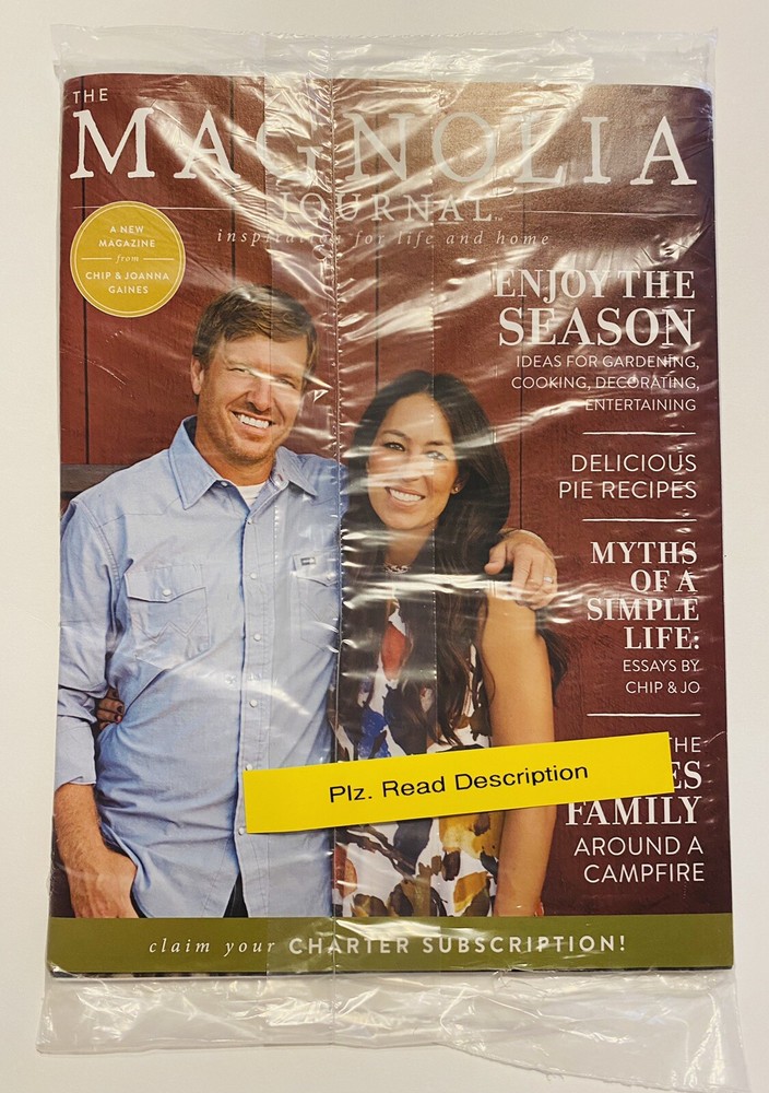 BRAND NEW IN ORIGINAL SEAL PROTECTOR… the April 2017 Better Homes & Gardens Magazine, and The Magnolia Journal Charter Issue. April 2017 BETTER HOMES AND GARDENS MAGAZINE!! The front features: Family style: Color in every room, Brighten up: 81 ways to add easy, livable color, Our 2017 palette of the year, Spring entertaining & small-space gardening + much more! 162 Pages Total!! Nice Combination of Home Decor, Health, Nutrition, Crafts, Gardening and Recipes!! This special edition of The Magnolia Journal, featuring Chip and Joanna Gaines, is a must-have and collectible for any home decor enthusiast. Filled with inspiring ideas and beautiful photos, it is sure to spark creativity in any reader. The publication is in English and was published in 2017 by Meredith Corporation, with a publication frequency of a special issue. This genre is home and garden with a topic of home decor. NOTE: small slit at bottom of wrap cover to remove personal details of former subscriber (see arrow). Note: The same image will look different on a screen monitor, laptop or mobile device because the resolution or lighting is different on various devices. The visual dimensions of the display vary depending on the size of the screen. What you see (the item or items described) in the photos is exactly what you'll receive. I PACKAGE AND SHIP WITH GREAT CARE! IN THE EVENT OF DAMAGE OR BREAKAGE, PLEASE RETAIN ALL PACKAGING MATERIALS. I do my best to describe each item in detail and provide pictures that feature any defects or issues that I am aware of. Questions are welcome… I will make every effort to respond quickly. I ship within 2 days after receiving payment, Monday thru Friday. All items are packaged with great care to get to you safe and sound. INTERNATIONAL buyer is responsible for customs and duties of your country. I am eco friendly! Most orders are carefully packed using recycled containers and packing material when possible.