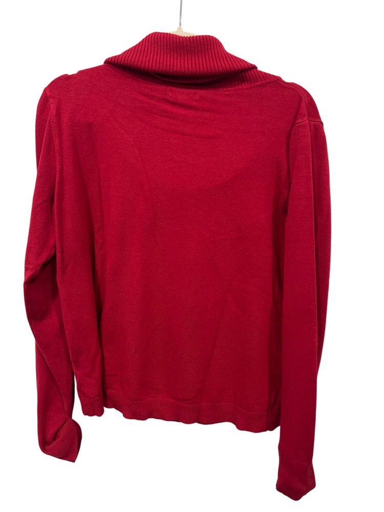 Apt 9 Cowl Neck Pullover Sweater Women XL Long Sleeve Red Knitwear Cozy Comfort This lightweight cowl neck sweater offers a polished look with a comfortable fit. Crafted with a soft rayon and nylon blend, it's ideal for layering. • Cowl neck design for added style • Lightweight and breathable fabric • Long sleeves with ribbed cuffs • Versatile for casual or dressy wear • Body: 81% Rayon 19% Nylon • Collar: 90% Rayon 10% Nylon Length = 21 inches Chest = 20 inches casual classic comfortable relaxed fall winter warm knit cozy comfy loungewear everyday closet staple modern essentials daily