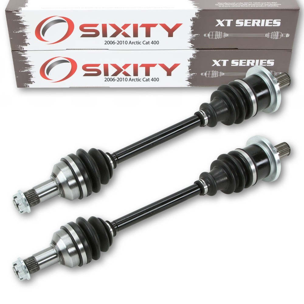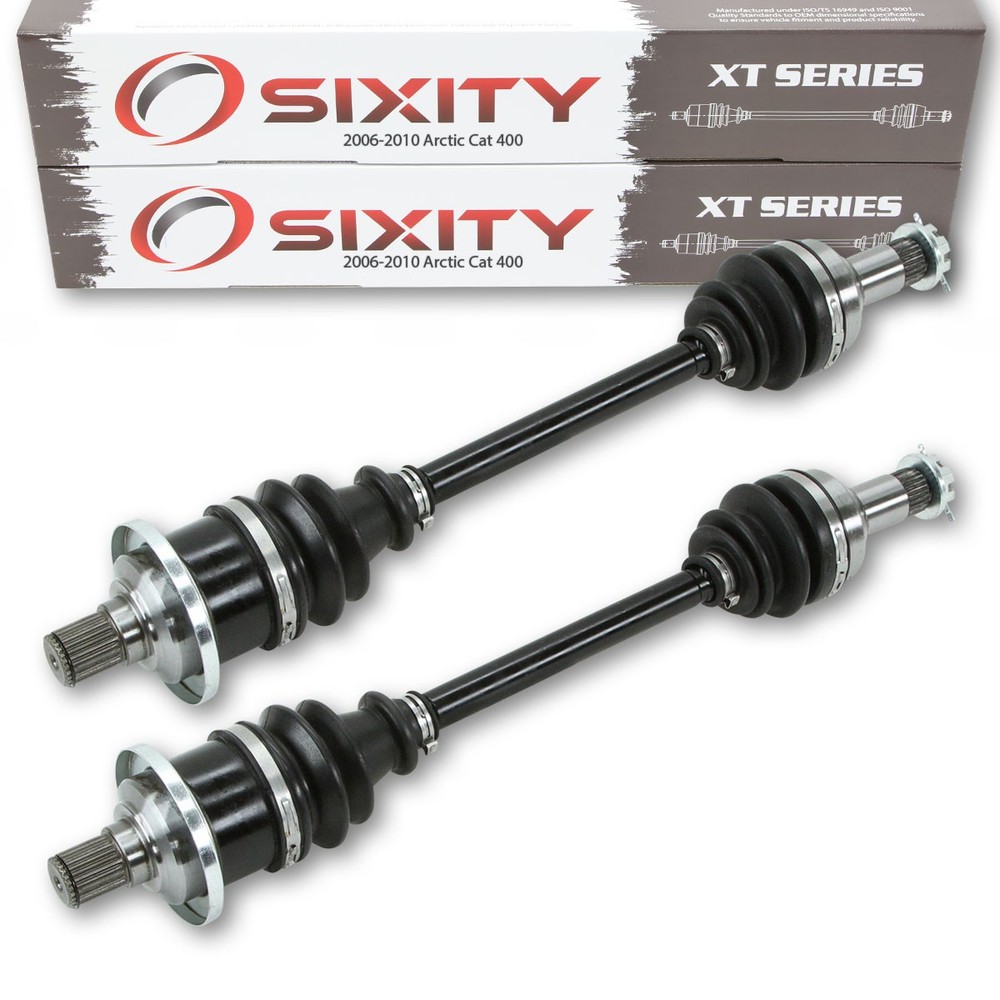 Fits 2010 2009 2008 2007 2006 Arctic Cat 400 4X4 TRV OEM replacement fully assembled high performance with Complete CV joint with neoprene boots. Easy installation inexpensive cheap upgrade. Sixity Axles Sixity Brake Pads Sixity Drive Belts Sixity Wheel Spacers SHOP CATEGORIES Sixity Axles Sixity Belts Sixity Brakes Sixity Spacers Gates Belts Dayco Belts NGK Spark Plugs DENSO Spark Plugs Philips Lighting Repair Manuals SHOP VEHICLES Arctic Cat Axles Can-Am Axles Honda Axles John Deere Axles Kawasaki Axles Kubota Axles Polaris Axles Suzuki Axles Yamaha Axles Arctic Cat 400 Rear Left Right CV Axle XT 2006-2010 4X4 TRV ATV Complete Sid iv Status: In Stock Condition: New You are purchasing the NEW, COMPLETE and FULLY ASSEMBLED ATV axle(s) shown. Vehicle: 2006-2010 Arctic Cat 400 4X4 Submodel: TRV Notes: Axle Location: Rear Left and Rear Right The Sixity XT Axle is a versatile Constant Velocity axle (also known as a CV axle shaft or CV joint axle shaft) that can handle a broad range of ATV and UTV trail terrain. The durable Sixity XT Axle, offered at a fraction of the cost of OEM axles, withstands terrain oscillation and harshness while ensuring riding agility. When it comes to 4-wheelers or side-by-sides, axles are one of the most important components, and depending on the rider, terrain, engine, and vehicle, they, like any other part, can fail. Before failure, there are signs and symptoms of a worn and damaged axle or CV joint to watch for including loud clicking noises when making a turn, a clunking sound when accelerating or decelerating, humming or growling noises, or a shudder or vibration when you accelerate. If this sounds all too familiar, it might be time to for an axle replacement. Whether looking for a rear or front CV axle, rely on Sixity and our years of powersports expertise, along with our incredible selection, to help you find the exact axle for your particular ATV/UTV vehicle application. RIDE TROUBLE-FREE: the Sixity XT features a robust steel shaft and flexible neoprene boots that maximize durability while high-temperature and high-load-bearing moly grease extends the life of the CV joint TRUST IN OEM QUALITY: manufactured under ISO/TS 16949 and ISO 9001 Quality Standards, the precise OEM dimensional specifications ensure vehicle fitment and product reliability CHOOSE SUPERIOR PERFORMANCE: the Sixity XT Axle was designed for all levels of ATV riders. Its high-quality components include precision-ground internal bearing surfaces that provide reliable performance TAP INTO THE POWER OF DURABLE DESIGNS: from the puncture-resistant neoprene boots that outperform thermoplastic boots in flexibility and environmental protection to the exceptional steel, Sixity XT axles showcase durable and agile construction INSTALL EASILY: Sixity XT Axles arrive fully assembled including inboard and outboard universal CV joints for quick installation Confirm Vehicle Compatibility To confirm that this part fits your vehicle, enter your vehicle's Year, Make, Model, and Submodel in the eBay Compatibility Table. Many of the parts we sell at Sixity only work with specific vehicles. Please double-check the accuracy of your order before purchasing. Check that the reference number, size, and placement are correct. Contact Sixity If you have any questions, you may reach us via our eBay Contact Form . One of our outstanding customer service representatives from our US-based service centers will respond to your questions or feedback. Shipping Your order will be processed and shipped within one business day. We strive to ship every order promptly. We will email you a tracking number when your order ships. Once the tracking number is generated, please allow 24-48 hours for tracking movement to appear. Our smaller items are shipped via USPS First Class or DHL, while larger, heavier items are shipped via FedEx Ground or UPS. Some items offer faster shipping for a small fee. Please see the Shipping and payments eBay tab for more details on shipping rates and delivery times. Sorry, no local pickups available. We participate in the eBay global shipping program. Please see the Shipping and payments eBay tab for details on the countries we ship to outside of the U.S. Customer Satisfaction Sixity stands for value, selection, and quality. Our goal is to provide a 5-star shopping experience. We give all our customers positive eBay feedback. Please work with us by contacting us here if you have a problem before leaving negative feedback. Returns If you would like to return your new, unopened, and uninstalled part: Go to your My eBay page. Click [Buy] > [Purchase History] on the left sidebar. Find the item you ordered. Below the Leave Feedback button, click [More Actions] > [Return This Item]. Select a reason. The most common reason is Doesn't Fit . Add details like I tried to install this part, and it didn't fit. Click [Request a Return]. Returned parts will be inspected, and a refund given within 5 business days if the part is new, unopened, and uninstalled. Original shipping costs and a restocking fee may be deducted from your refund. If the item has been opened, installed, or used, we are unable to accept a return due to safety concerns. About Us Known for our industry-leading Sixity XT and XTA CV Axles, Sixity Powersports helps diehard ATV, motorcycle, and snowmobile riders find affordable - and awesome - replacement parts for their machines. Try our fast shipping today: 99% of orders ship within 1 business day! Our goal is to provide you with the best possible shopping experience through unsurpassed value, convenience, and selection. We strive to deliver on our core tenets for our value-conscious customer base including free and fast shipping*, a 100% fitment guarantee**, a U.S.-based Customer Service Center, and a limited 1-year warranty on Sixity-branded parts. Give us a try today, and happy riding! Free, Fast Shipping* 100% Fitment Guarantee** 1-Year Limited Warranty on all Sixity-brand parts US-Based Customer S