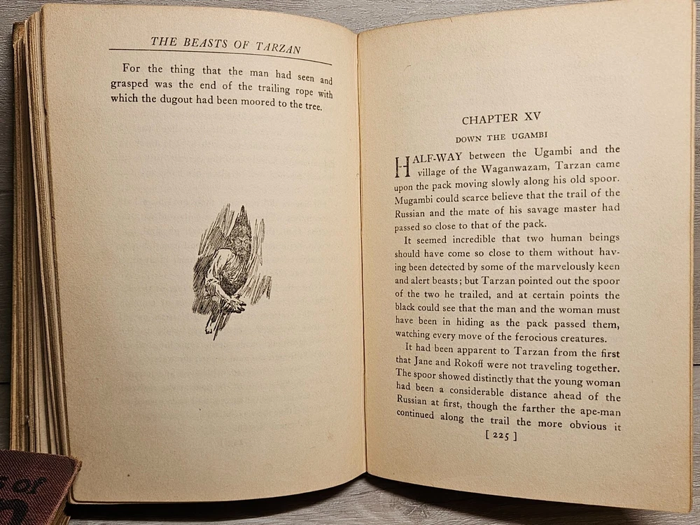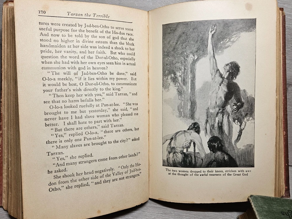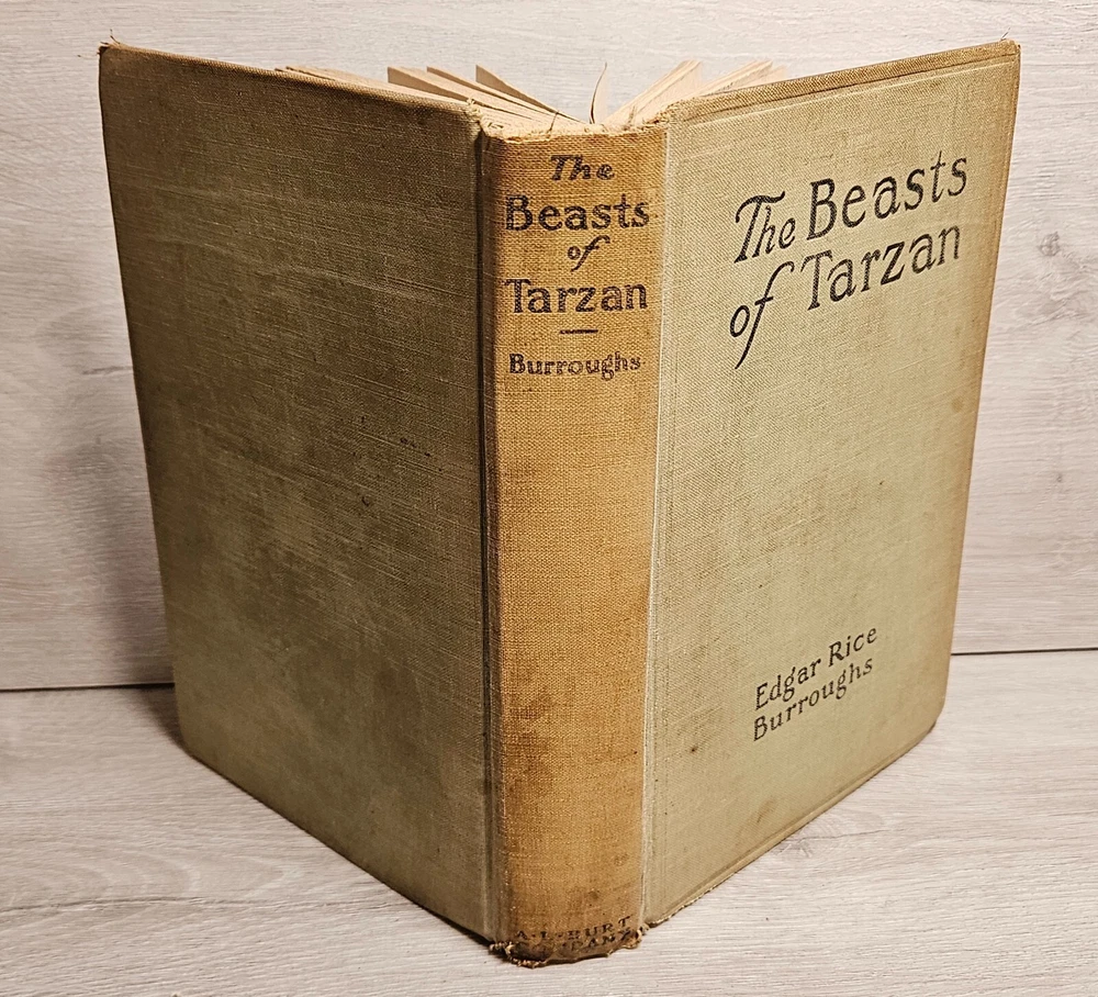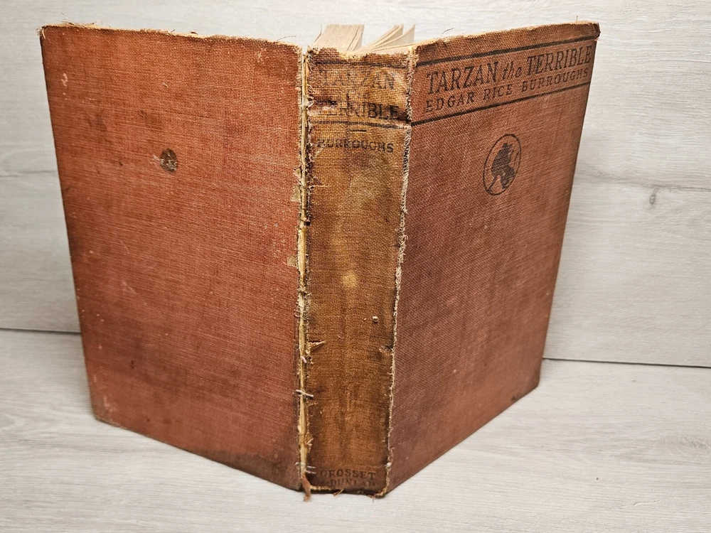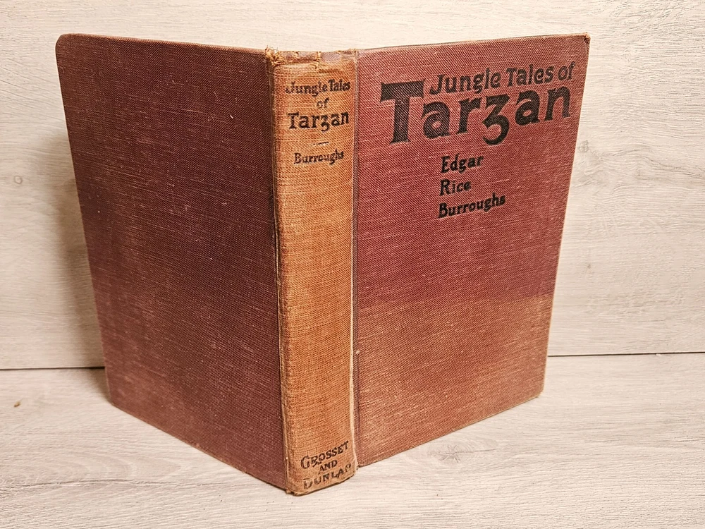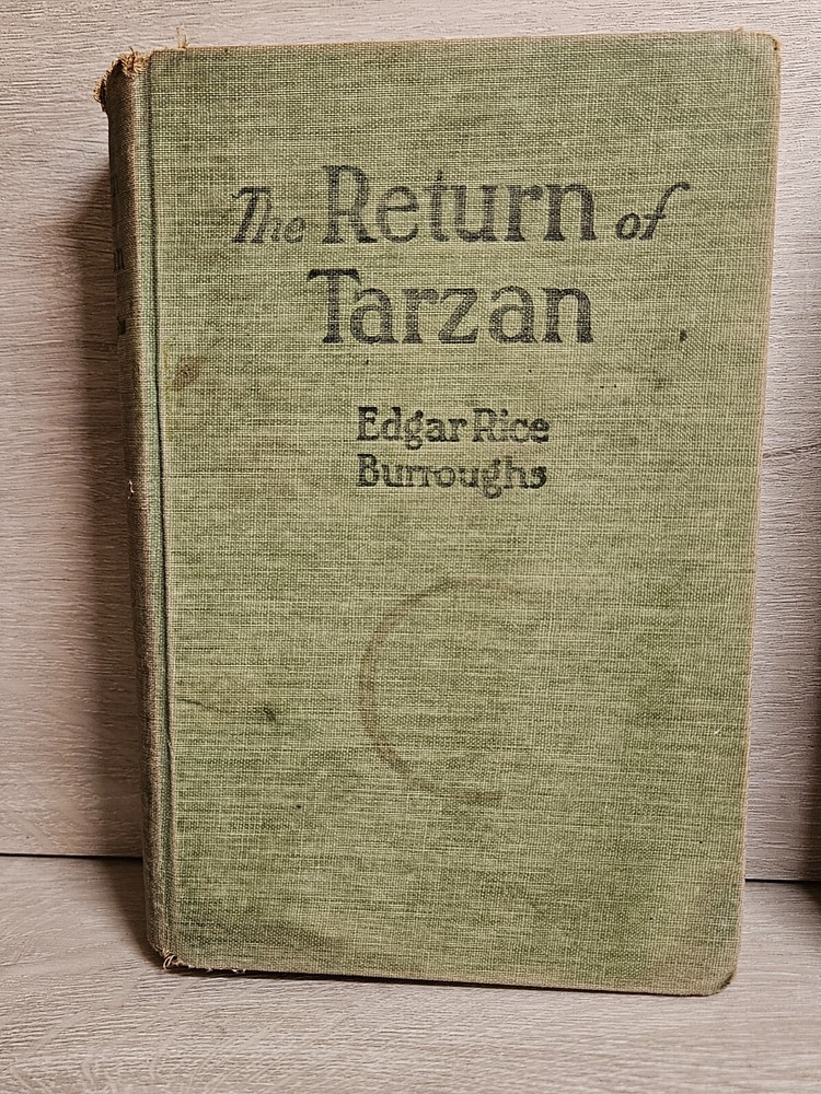 Titles included are: The Return of Tarzan - 1915 The Beasts of Tarzan - 1916 The Son of Tarzan - 1917 Jungle Tales of Tarzan -1919 Tarzan the Terrible - 1921 These are in acceptable to poor condition. Covers are quite worn, stained and faded. Interior pages may have previous owners' signature, and some may have water staining and yellowing of pages. Although pages are not loose, these should be handled with care. Rare to find a group of books like these.