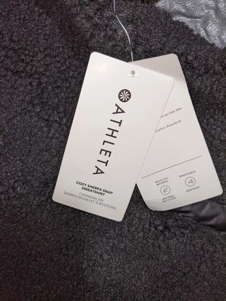 Athleta Cozy Sherpa Snap Sweatshirt Size Large Black Stay warm and comfortable with this Athleta Cozy Sherpa Snap Sweatshirt in size Large and classic Black color. Featuring a V-Neckline and Henley st...