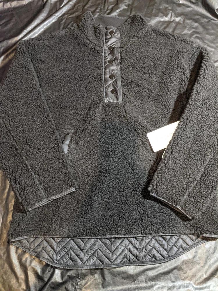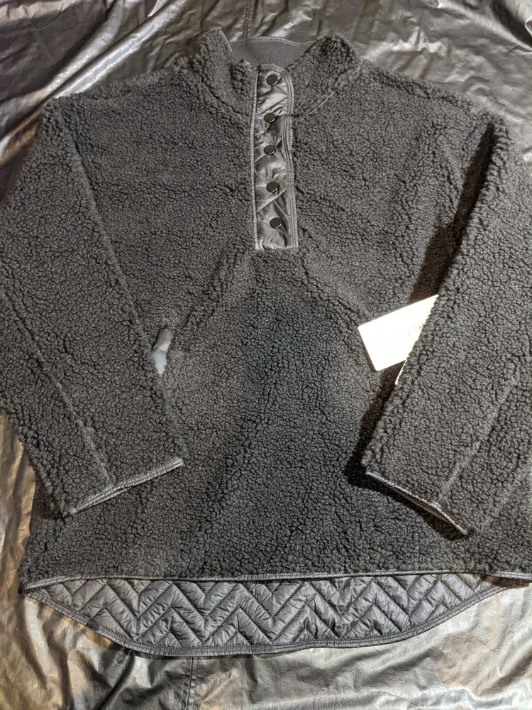 Athleta Cozy Sherpa Pullover Snap Sweatshirt in Black Size Large