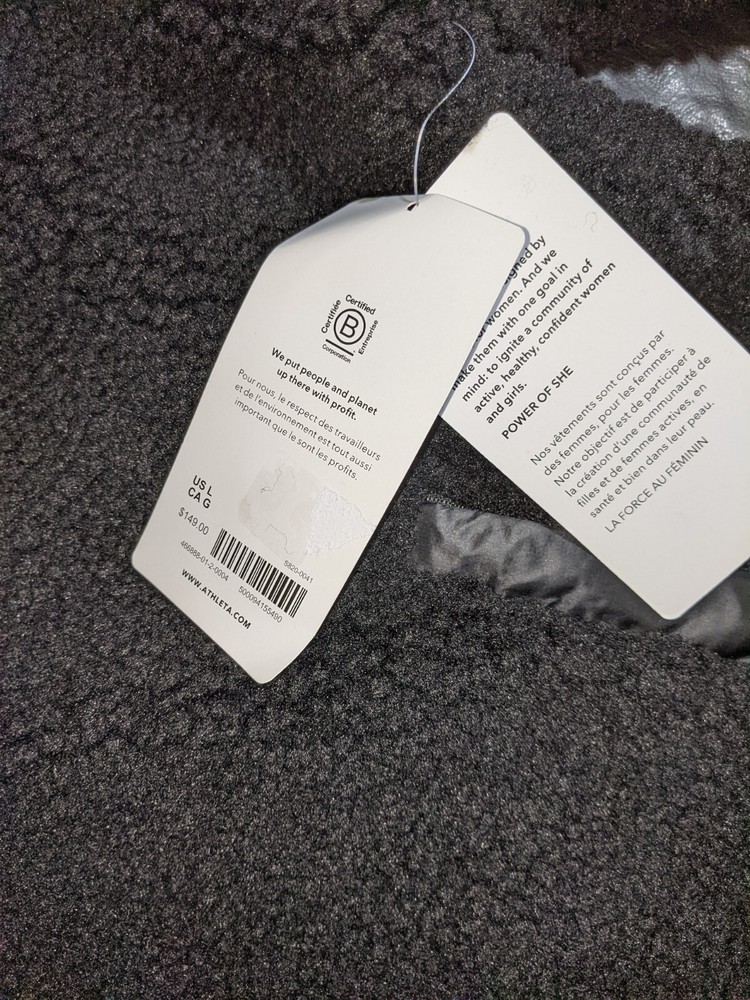 Athleta Cozy Sherpa Snap Sweatshirt Size Large Black Stay warm and comfortable with this Athleta Cozy Sherpa Snap Sweatshirt in size Large and classic Black color. Featuring a V-Neckline and Henley style, this sweatshirt is made of 100% Polyester and Blended Fabric. The Long Sleeves with Snap Closure make it perfect for Activewear and Sports themes. The logo Accents add a touch of style to this Sweatshirt from Athleta's Product Line. Its easy care Features and Regular Size Type make it suitable for Women who love Athleta's Character. This Solid Pattern Sweatshirt is perfect for any Occasion and is a must-have addition to your wardrobe.