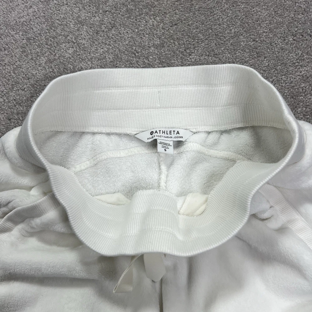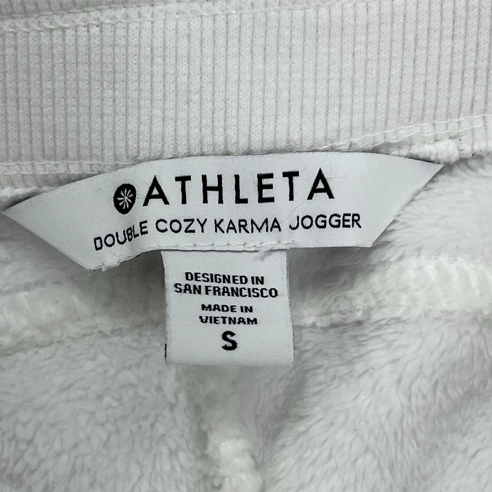 Athleta Double Cozy Karma Jogger Small White Fuzzy Warm Winter Soft Stretch 28” Inseam Condition Is Pre-owned With No Holes, Stains, Or Snags Shipped With USPS Ground Advantage...