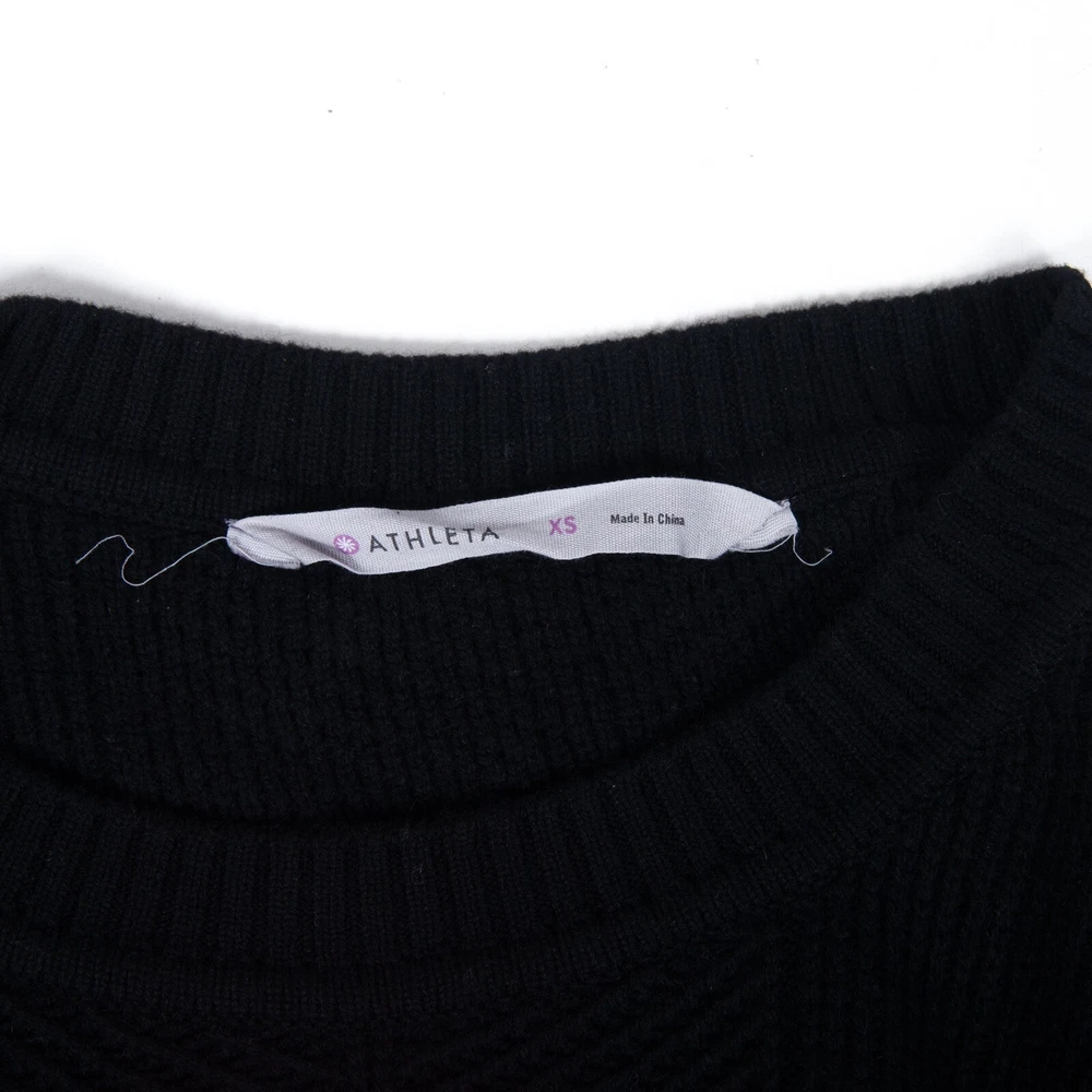 Be cozy comfortable while stylish at the same time; Athleta Pullover Ribbed Knit Sweater Wool Cashmere Cozy Comfort/Style Black. Last photo shows different color than listed, however it’s useful to show details in fit and pattern in sweater. Fabric Content: 70% wool, 30% cashmere Size: XS; may fit larger frames as well. Measurements: 22” across 27” length 16” drop sleeve (from seam to hem) Condition is Excellent Pre-owned. Shipped with USPS Priority Mail.