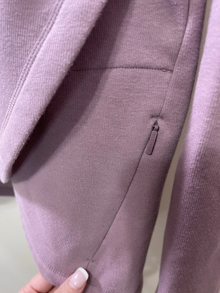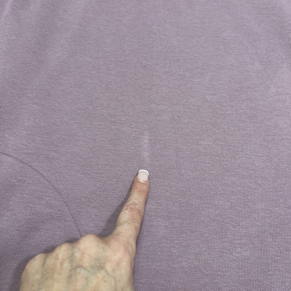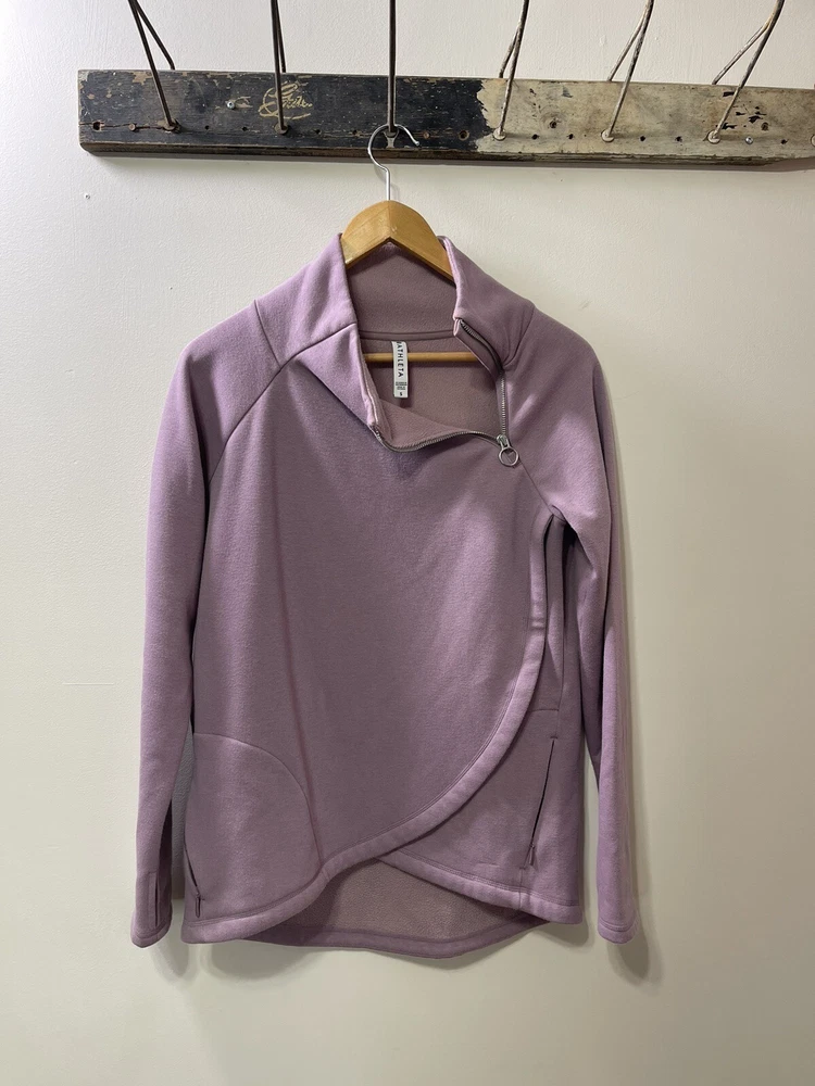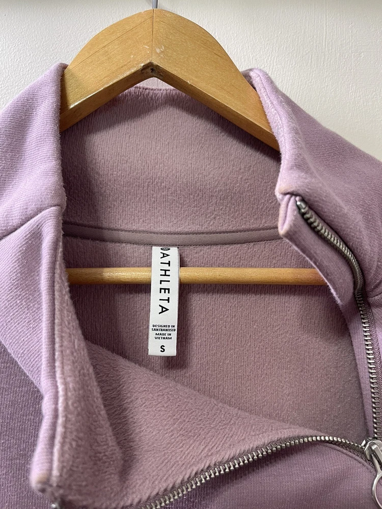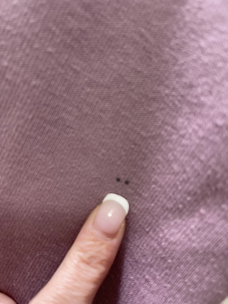 Absolutely love this cozy lavender pullover! The fleece is super soft and comfy, perfect for lounging or running errands. The spot mentioned is barely noticeable, and the fit is just right—super flattering. Great preowned find from a smoke-free home, totally worth it for the price!