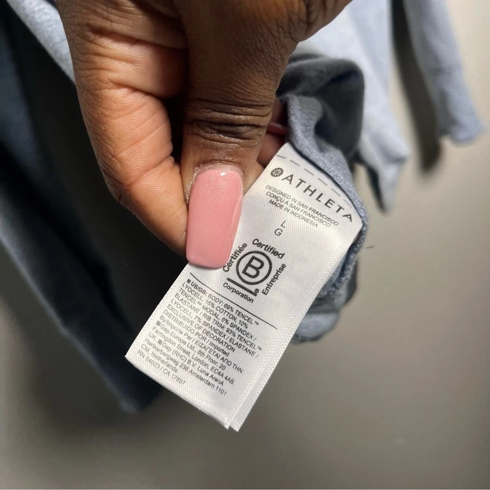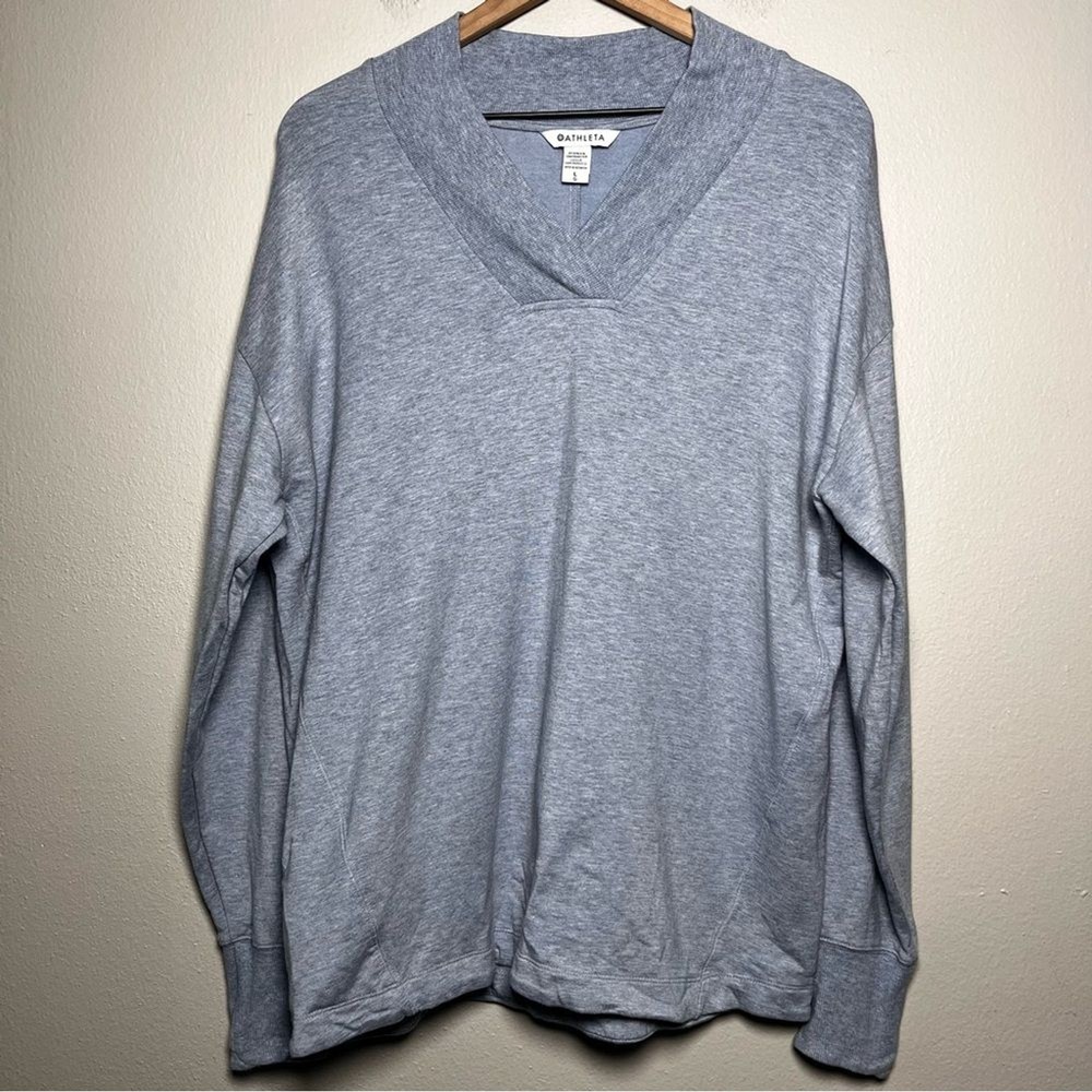 Athleta Women Clarity Sweatshirt Large V-Neck Blue Cozy Soft Lounge - the item is in excellent condition with no flaws; please see all photos.