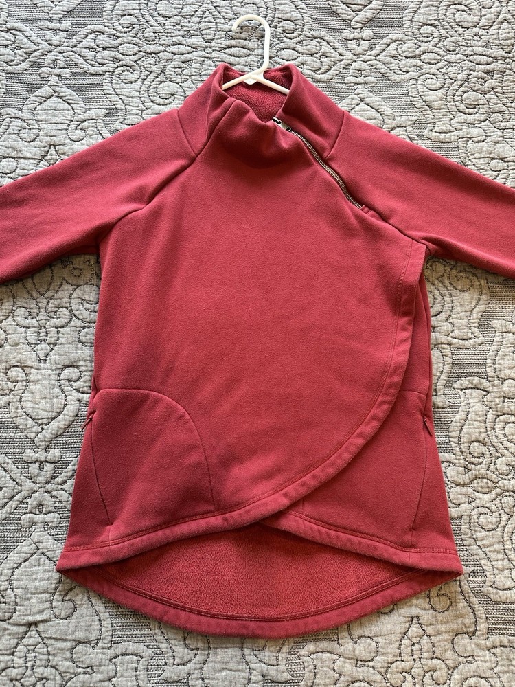 The Athleta Women’s Cozy Karma Asym Pullover Sweatshirt is a stylish and comfortable activewear piece perfect for outdoor activities like walking. It features a long sleeve design with a pullover closure, making it easy to wear and take off. The sweatshirt is made from a blend of polyester, spandex, and cotton, with a cozy fleece lining that provides warmth and comfort. Machine washable, this cozy sweatshirt offers a regular fit and is ideal for women looking for a versatile and functional addition to their wardrobe.