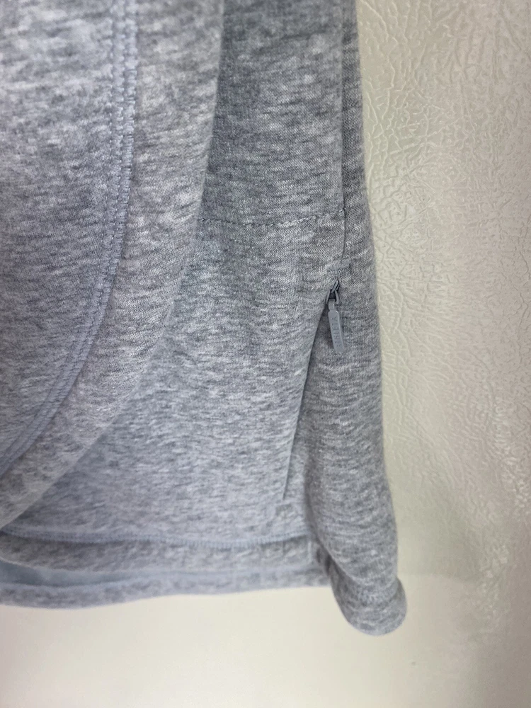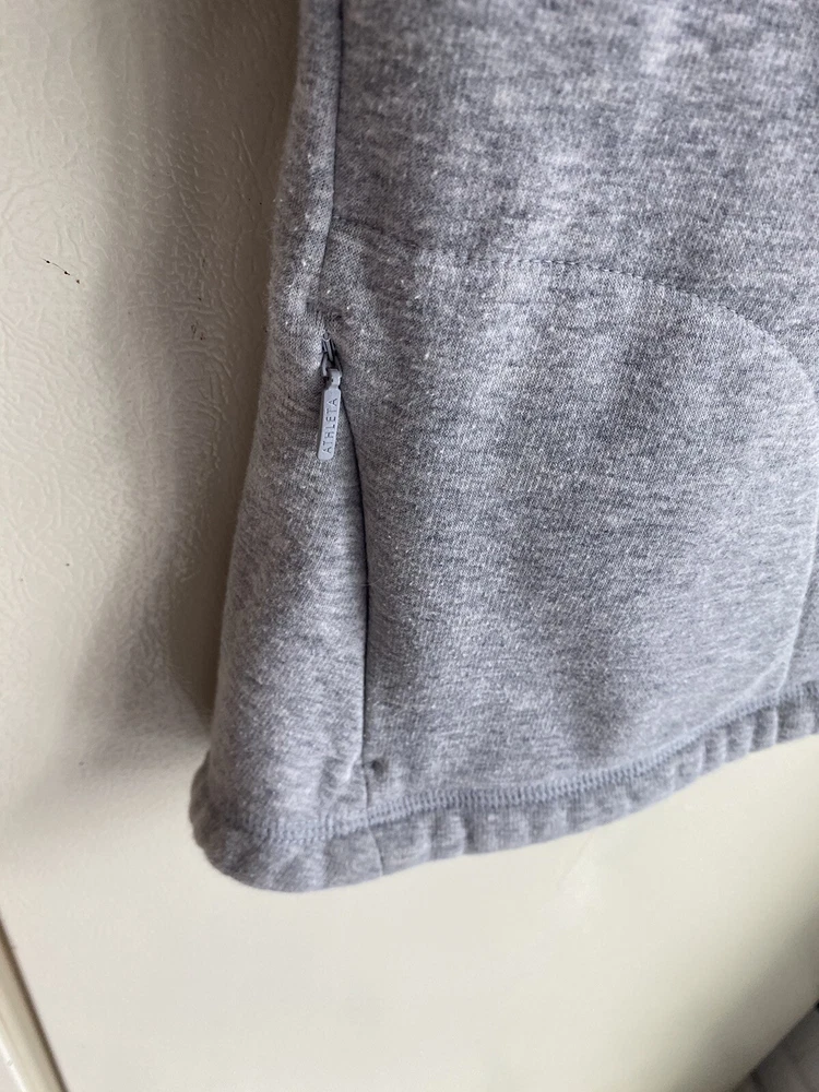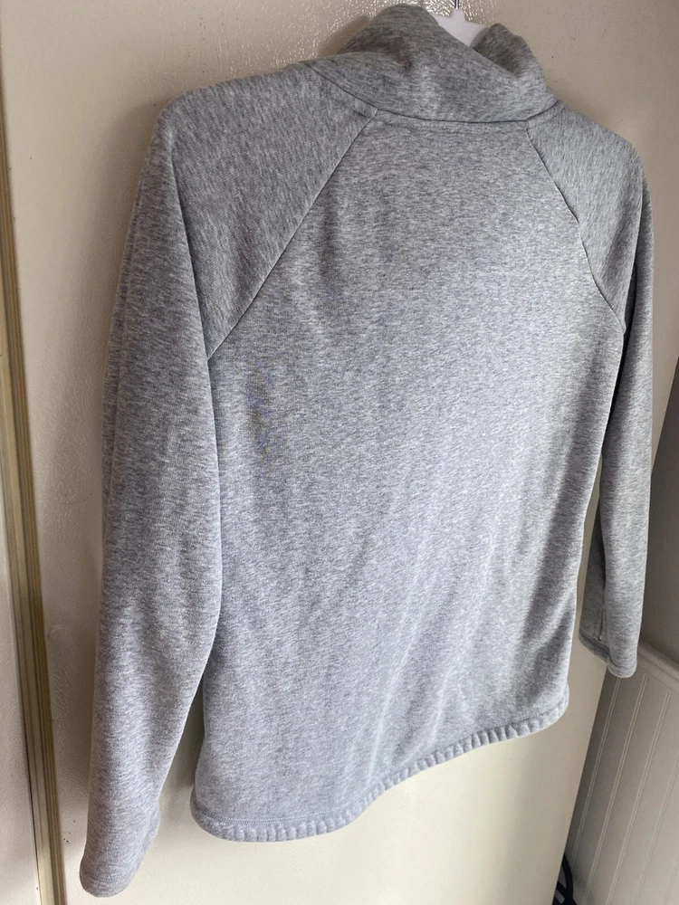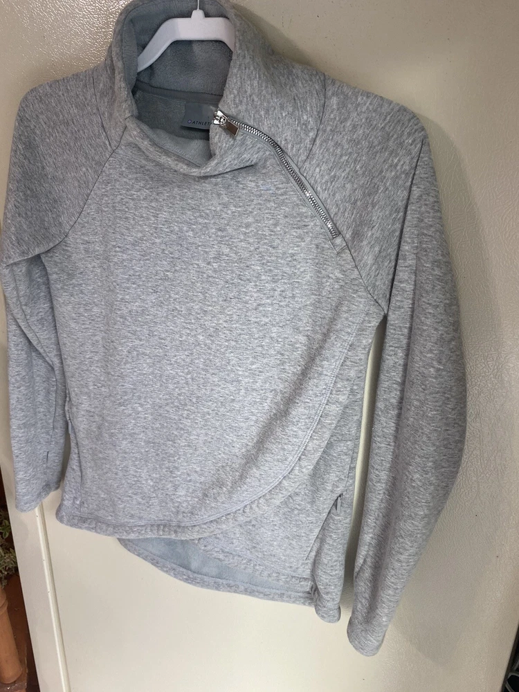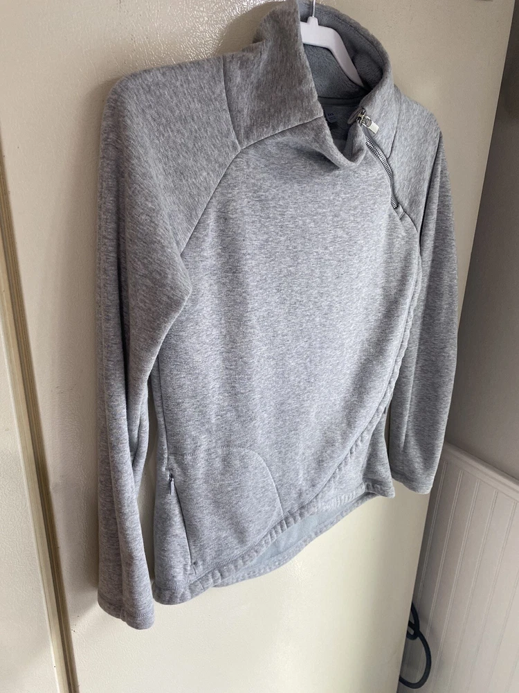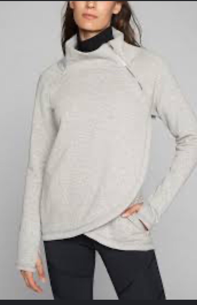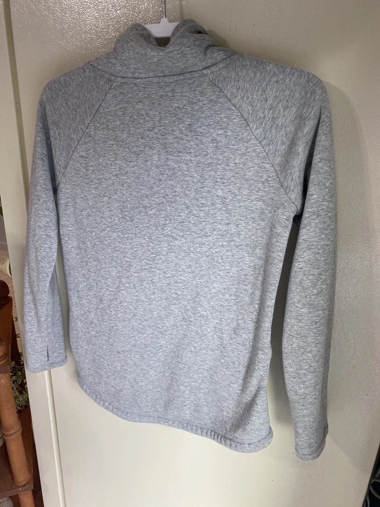 Get ready for the ultimate comfort and style with this Athleta Women's Crazy Cozy Wrap. This pullover sweatshirt comes in a beautiful gray color and features a mock neck, long sleeves with thumb holes, and a convenient zipper pocket. It's made with high-quality materials including polyester, spandex, and cotton, making it perfect for any season whether it's winter, fall, or spring. The sweatshirt also has a wide range of features including easy care, stretch, and additional pockets that make it perfect for activities like gym and training, walking, cross-training, track and field, and running and jogging. It's a classic and sporty addition to any wardrobe and is available in size 2XS. The Athleta Women's Crazy Cozy Wrap is part of the Athleta product line and perfect for anyone looking for a comfortable and stylish sweatshirt without mentioning its condition.e-34