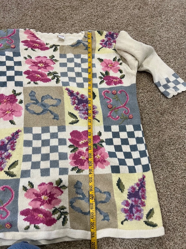 small loose yarn on flower, otherwise great condition measurements in photos...