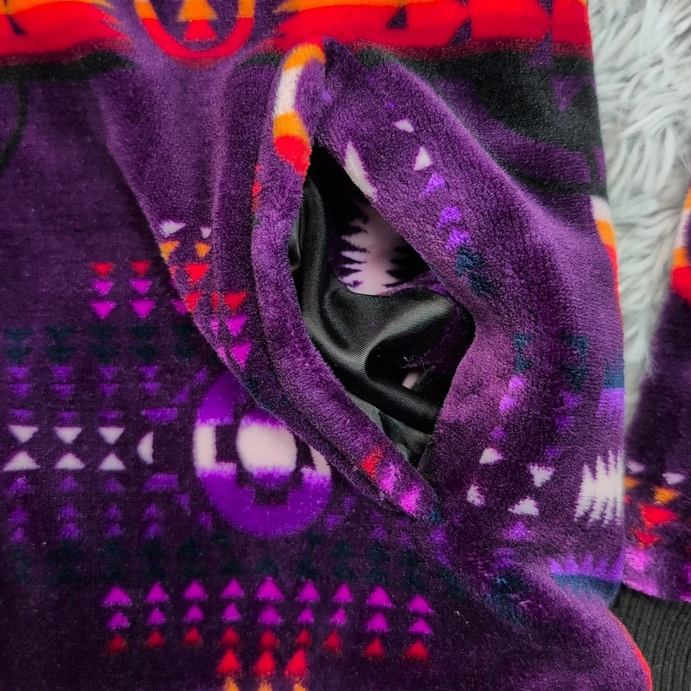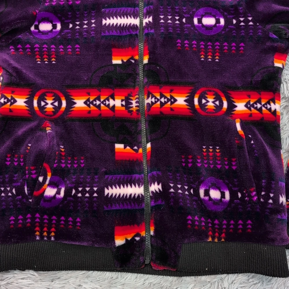 Aztec Jacket Womens M Purple Fleece Southwestern Zip Up Cozy Warm Comfort Hood Good condition. Please review photos for measurements and condition. Item will be shipped within one business day. We ship items daily Monday-Friday. * Product color may vary slightly due to photographic lighting or your monitor settings.