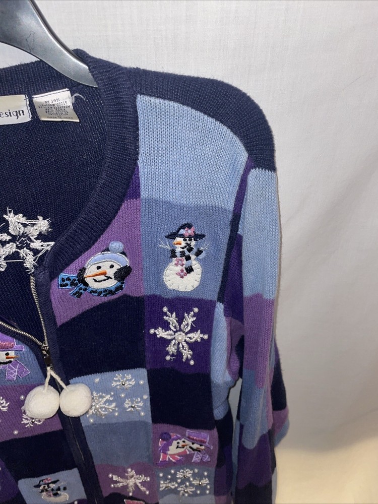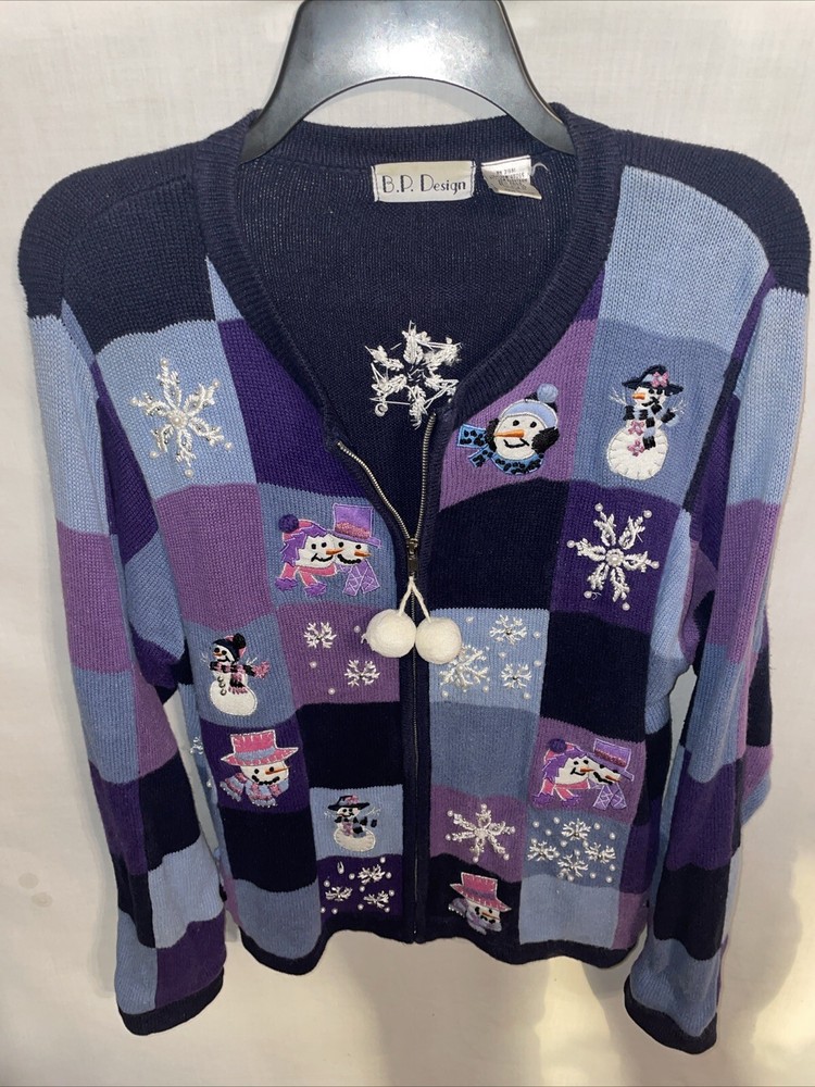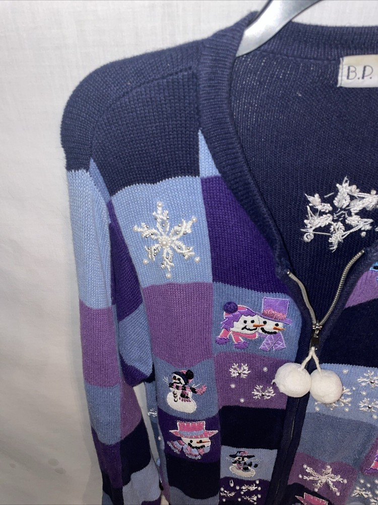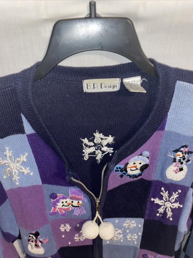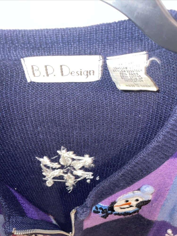 This women’s blue black snowman B.P. Design full zip cardigan is in great shape! This item comes in a size Large Armpit to armpit is 22 Armpit to sleeve is 20 Back of collar to hem is 27 Make an offer! If it doesn’t go…..message me what you’re thinking! Thanks for looking at our item!😊 S1 S2