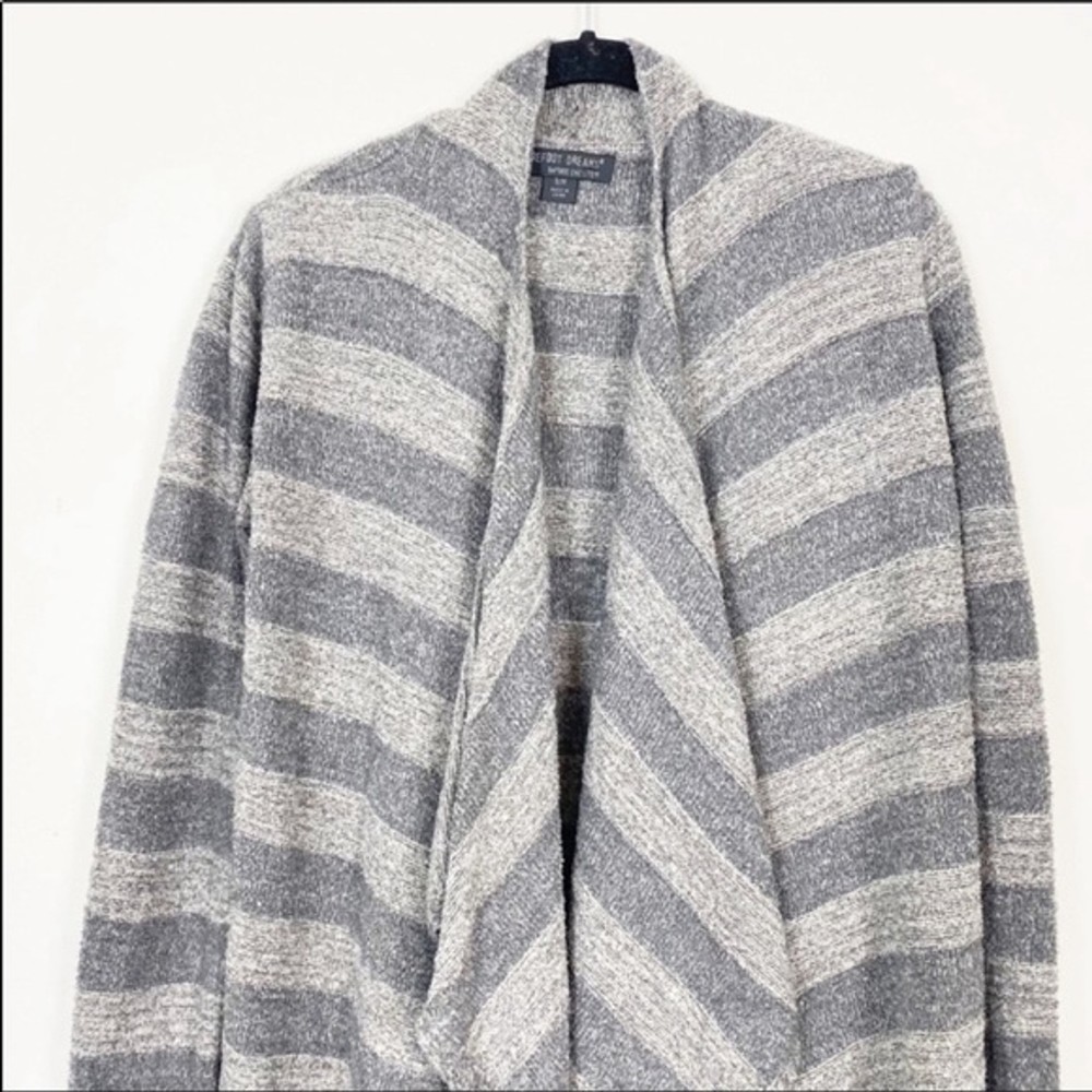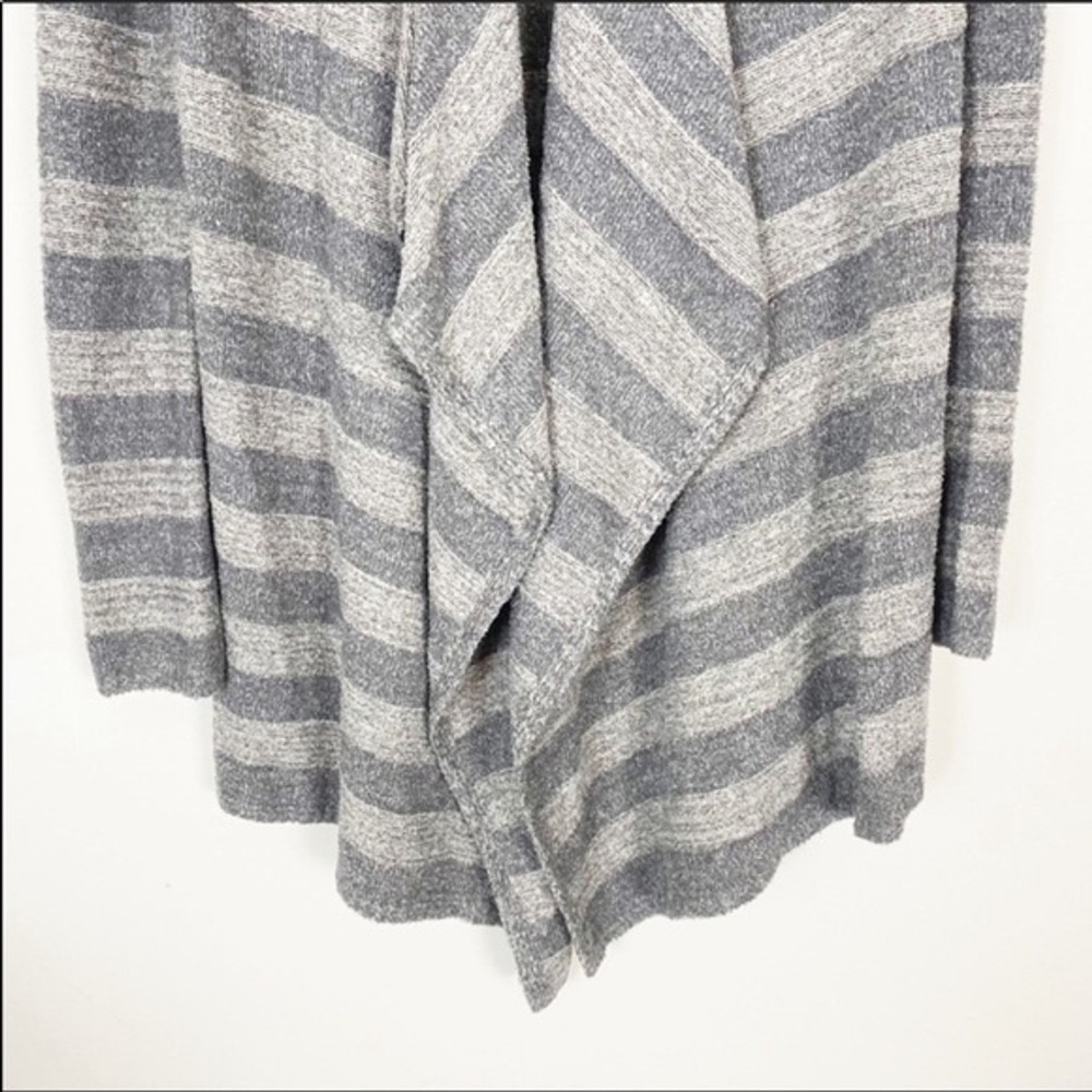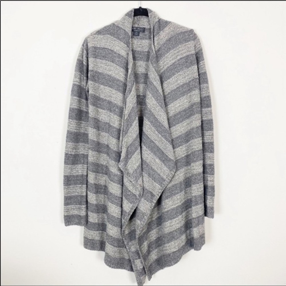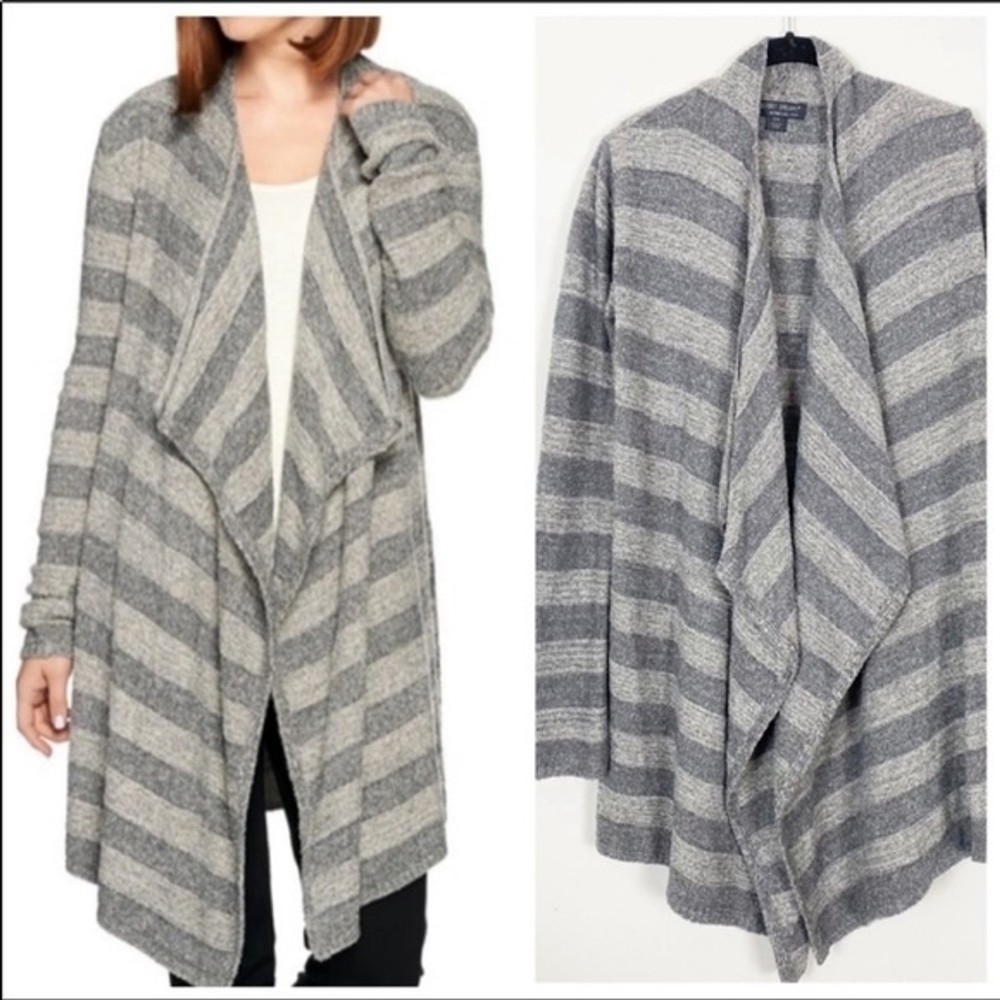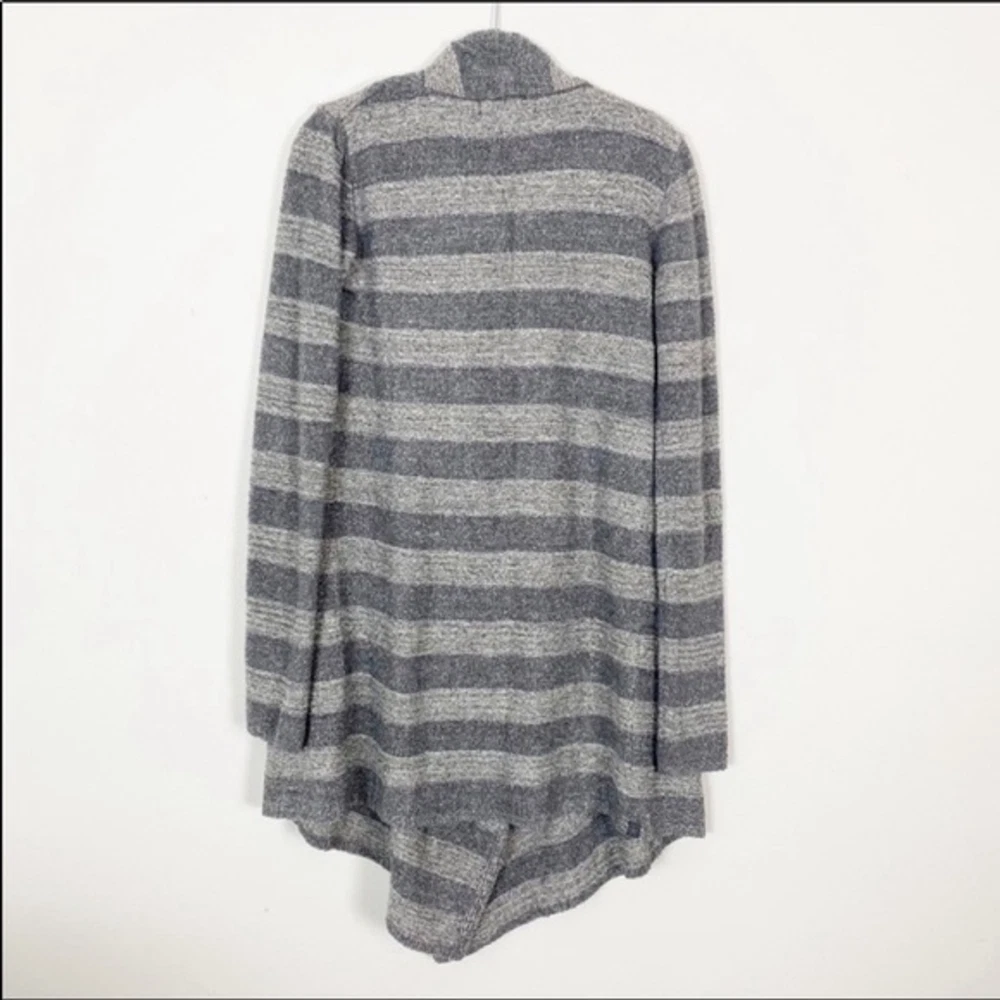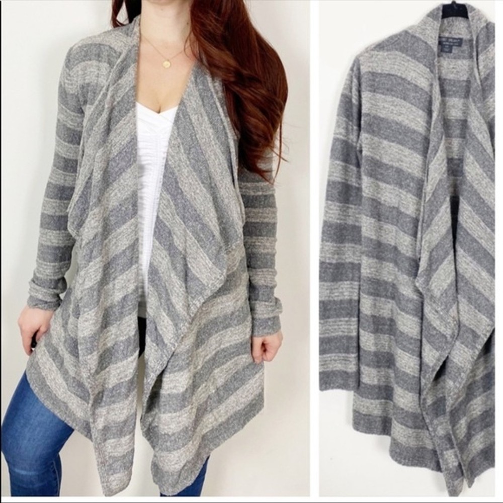 Excellent like new preowned condition. Barefoot Dreams Bamboo Chic Lite Cardigan Sweater. s/m. Open waterfall front. Super soft cozy feel. Dark grey and lt grey shades in stripe pattern I ship same or next day except Sundays! Bundle to save on shipping! Tags: lounge comfy casual fall winter boho bohemian sexy career casual cozy soft warm light college university trendy style slouchy oversized flowy loose urban hippie hippy hipster relax