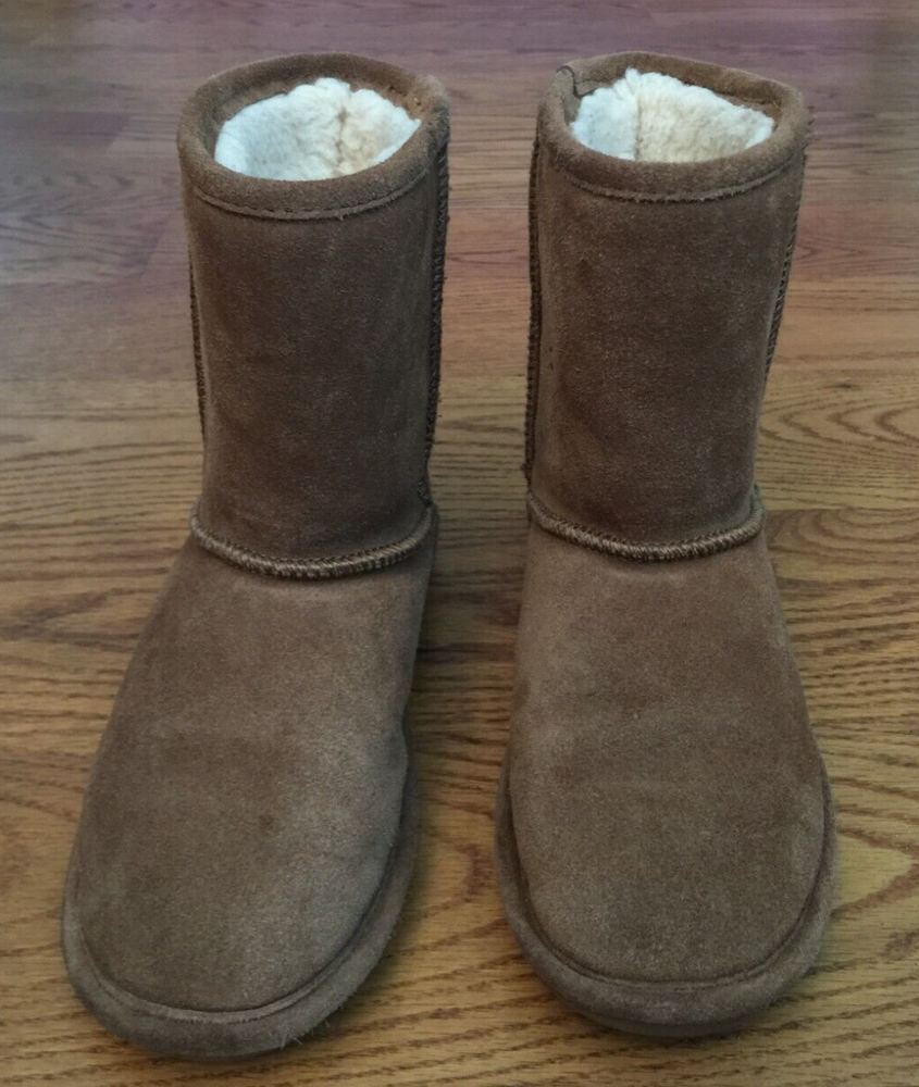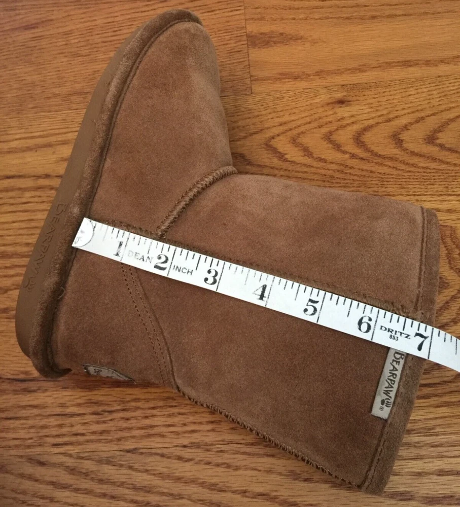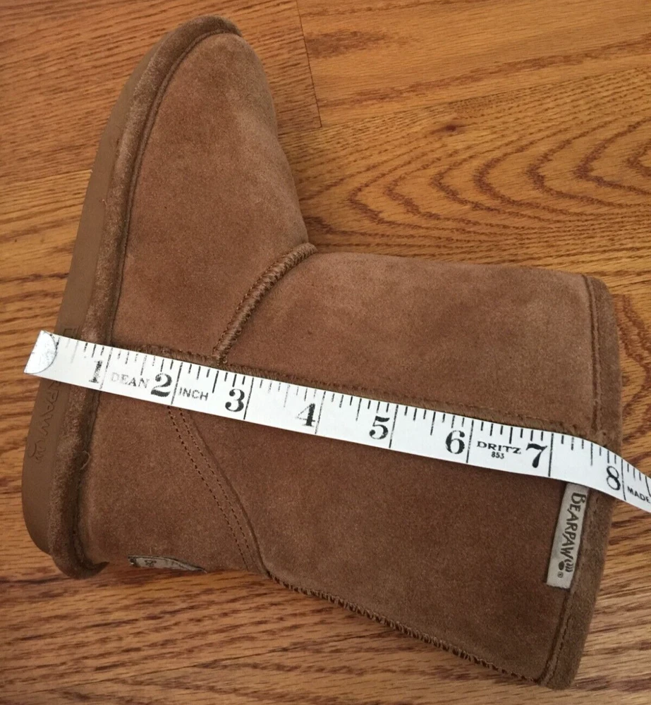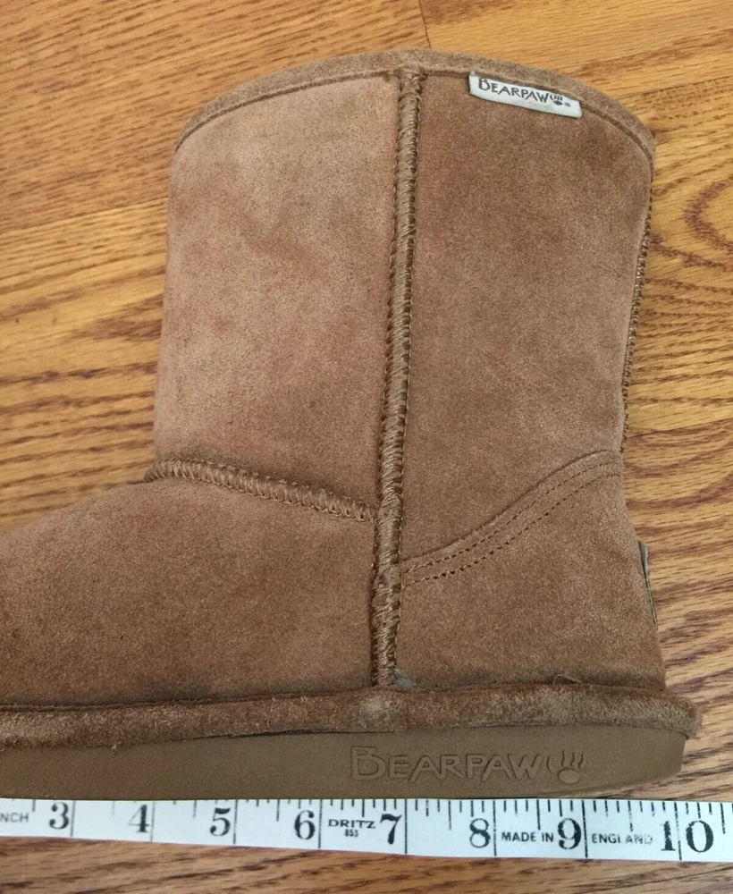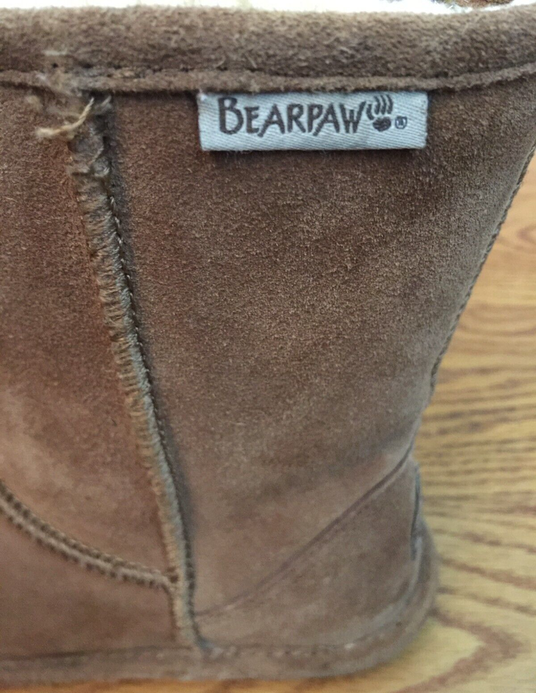 BEARPAW EVA NEVERWET SUEDE SHEEPSKIN BOOTS The boots are in good pre-owned condition. Please refer to measurements below to help verify fit. There are no smoke odors, no pet odors. Please read the full description and review all photos. Be sure you are satisfied with the style, the size, the measurements and the pre-owned condition. Final sale. No returns allowed. Thank you! Approximate Measurements: Outsole Length: 10 inches heel to toe Outsole Width: 3 5/8 inches across SECURE PACKAGING. SAME DAY SHIPPING. Ultra soft suede upper Sheepskin and wool blend lining for warmth NeverWet® technology helps protect boots against moisture and stains BEARPAW® woven label heel logo and collar logo add style Lightweight rubber outsole is durable and flexible Color: Hickory eBay automatically calculates the shipping cost. It is based on the buyer's distance from the seller, the package dimensions and the package weight.