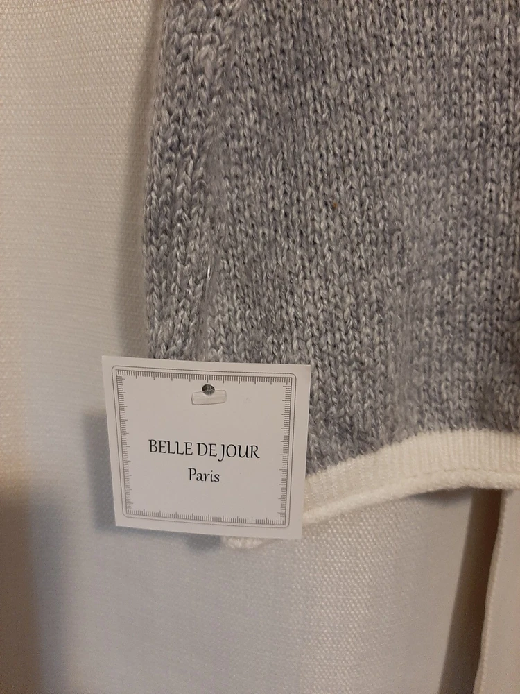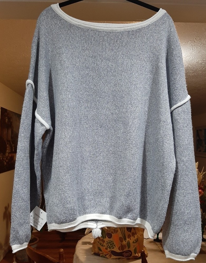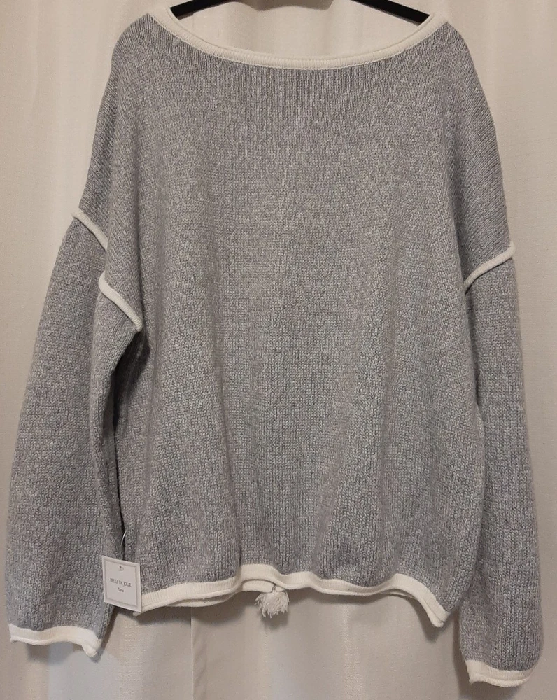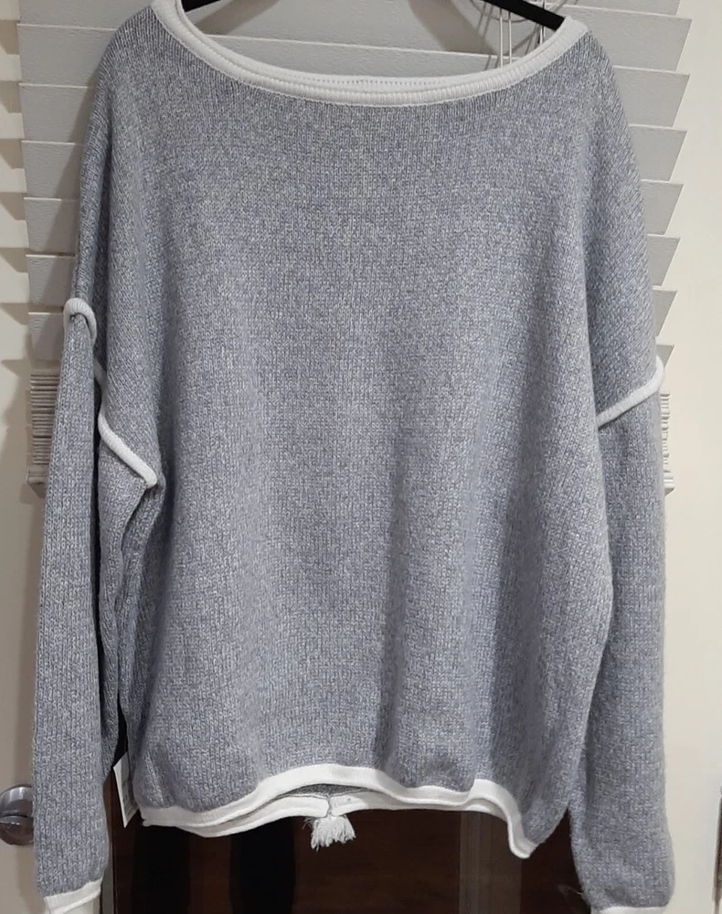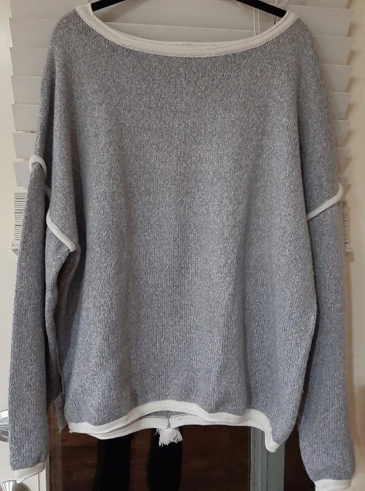 BEAUTIFUL Belle De Jour gray XL Pullover Sweater w/fringe back stripe NEW. MRP $50-$65. This is a cozy extra Long sleeves & fun Fringe back. Great for holidays. B14...