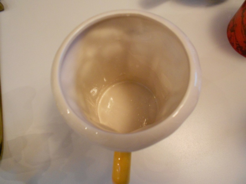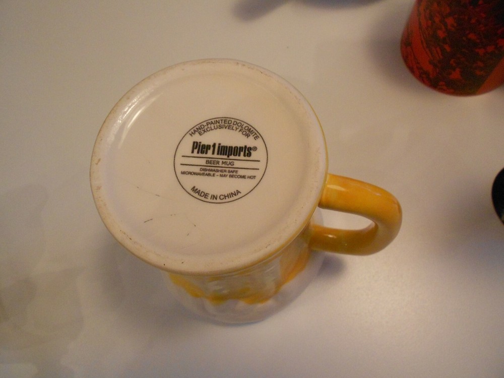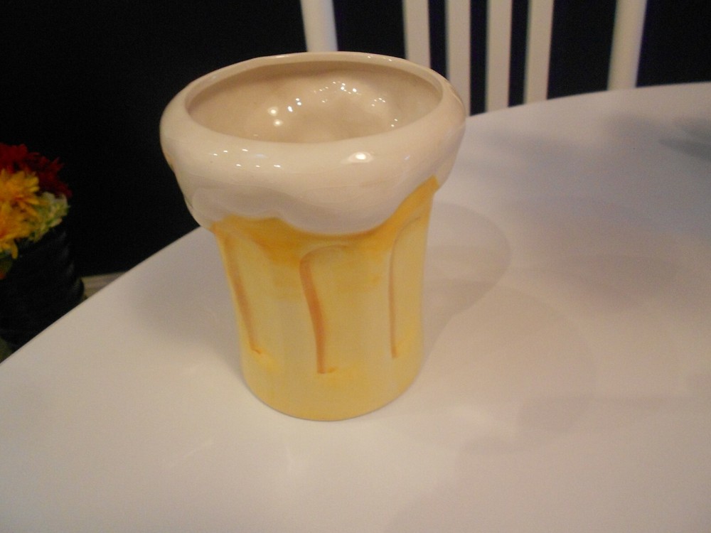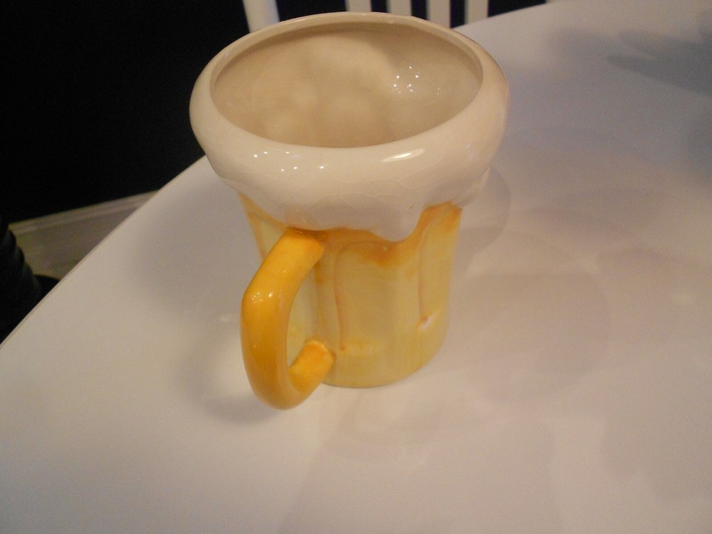 This beer mug is fantastic—great retro design with a cool foam top! At just under 5 inches tall, it’s the perfect size for a chilled drink. The condition is flawless—no chips, stains, or flaws. Looks brand new and adds a fun touch to any barware collection. Love it!