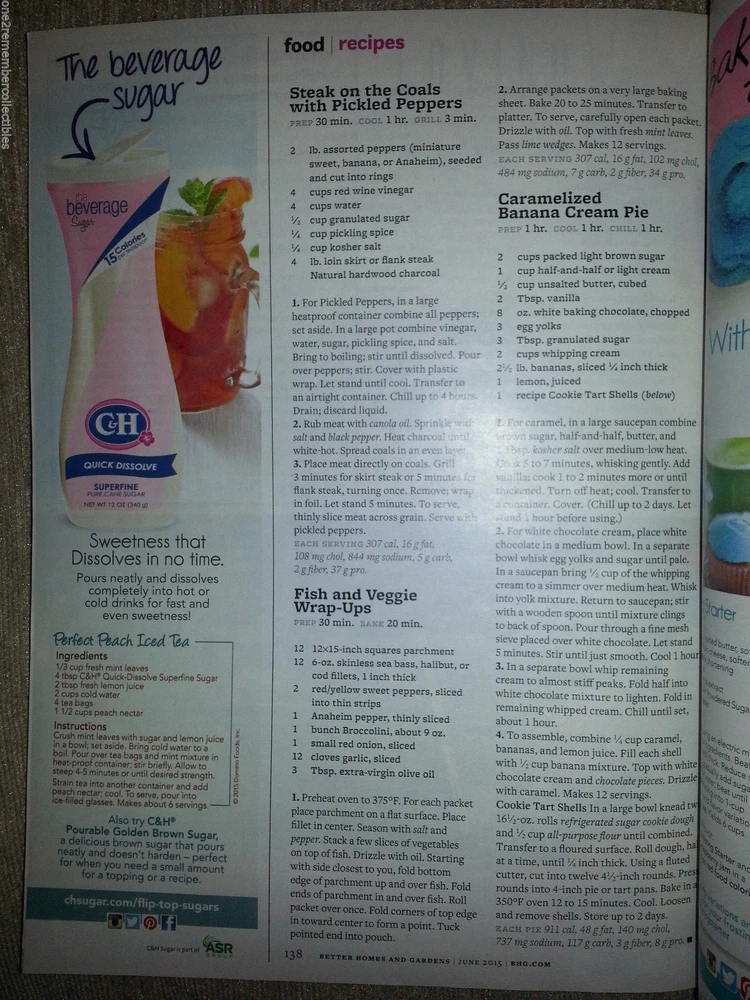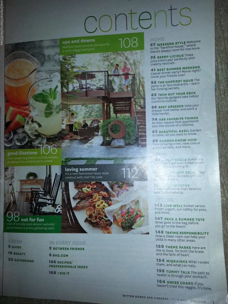Up for your consideration is a used, Good Condition , June 2015 BETTER HOMES AND GARDENS MAGAZINE!! The front features: Cool Summer Fun, 101 Easy Party Ideas, Berry Colors to Brighten Any Room, Bold Basil and Best Ice Cream Floats! Nice Combination of Home Decor and Recipes!! I have included a picture of the Table of Contents and Many Pictures to further show the magazine. Missing pages: Z3-Z4 and 125-126. Please feel free to ask any questions you may have! *I purchased an Antique Store and will be listing new items, just about every day!! This is the reason I'm able to sell such a Wide Variety of Rare & Collectible Items!! I've also been a "Collector" myself, since I was a small girl. Some items listed will be from my personal collections. Please Check Back Daily!!* *I'm planning to get married to my high school sweetheart (after 12 years of dating) and am currently selling items to try to save up money for our wedding and to start a family. Please feel free to make me an offer on items. I'm open to all reasonable offers! ------------------------------------------------------------------------------ Add me to your Favorite Sellers! I'm Always Listing New Items in my STORE - One2RememberCollectibles! Thanks for Looking!! ------------------------------------------------------------------------------ I combine shipping, please ask for specifics! (Combined shipping, does not mean free shipping on the second item. The shipping prices will be combined, for a lower price than if they were purchased separately.) I always package everything very well to help ensure that nothing will break. - Check my feedback. :-) Payments must be made within 5 days of winning the auction/listing. I'll Ship the Winning Product within 1 Business Day of receiving payment. ALL items get scanned at the post office, for proof of shipment. USPS Shipping Includes Tracking ! Shipments will only be made to Confirmed Shipping Addresses, that are included when the purchase is made. There will be no change of address available, after payment is made. Please make sure that all of your information is correct before submitting it. Please ask any questions you may have, before you purchase the item. For U.S. Buyers: Shipping Insurance Will be Included , when Priority Shipping is purchased. I provide the "Guaranteed 3 Day Shipping" option for many of the items in my store. If for some reason the item doesn't get to you in the "guaranteed time" please understand that this is not my fault in any way, but the fault of the Post Office. As promised in my listing, I will ship out all purchases within 1 business day of receiving payment. Depending on the time of the year and how busy they are, the post office may be a bit slower with shipments. I'm happy to help in any way possible, but am not responsible for them holding up to their promised shipping time. eBay will help with any problems that occur. Please Do Not leave negative feedback for shipping times, as I will hold up to my promised handling time of 1 business day. I will do my best to get it shipped out the same day, if payment is made before 8am PST (and possibly after). I greatly appreciate your understanding that I'll do everything I can to get it to you in the Guaranteed 3 Days!! For International Buyers: Some International shipping prohibits Tracking and/or Delivery Confirmation. If it's available, for the priority shipping price paid, I Will include it! Insurance will not be included with International Purchases. *If you're interested in shipping insurance, contact me Before you make your purchase. I can then make a revision and include it into the shipping price (if it's available for your country). All revisions need to be done Before purchases are made.* Please ask any questions you may have, before you purchase the item. INTERNATIONAL BUYER'S PLEASE NOTE: IMPORT DUTIES, TAXES AND CHARGES ARE NOT INCLUDED IN THE ITEM PRICE OR SHIPPING CHARGES. THESE CHARGES ARE THE BUYER'S RESPONSIBILITY. PLEASE CHECK WITH YOUR COUNTRY'S CUSTOMS OFFICE TO DETERMINE WHAT ADDITIONAL COST WILL BE PRIOR TO BIDDING/BUYING. THESE CHARGES ARE NORMALLY COLLECTED BY THE DELIVERING FREIGHT (SHIPPING) COMPANY OR WHEN YOU PICK THE ITEM UP. - DO NOT CONFUSE THEM FOR ADDITIONAL SHIPPING CHARGES. WE DO NOT MARK MERCHANDISE VALUES BELOW VALUE OR MARK ITEMS AS GIFTS. - U.S. AND INTERNATIONAL GOVERNMENT REGULATIONS PROHIBIT SUCH BEHAVIOR. -------------------------------------------------------------------------------------- 100% Customer Satisfaction Is My Goal! FEEDBACK We All crave Feedback. After you have received your item, please let me know that you are satisfied with your purchase by posting Positive Feedback for my store. I will then post Positive Feedback about you within 1 Business Day. If you're thinking about posting neutral or negative feedback, I ask that you contact me first. Remember, communication can resolve most problems. --------------------------------------------------------------------------------------- Please disregard - Personal seller message: Box #