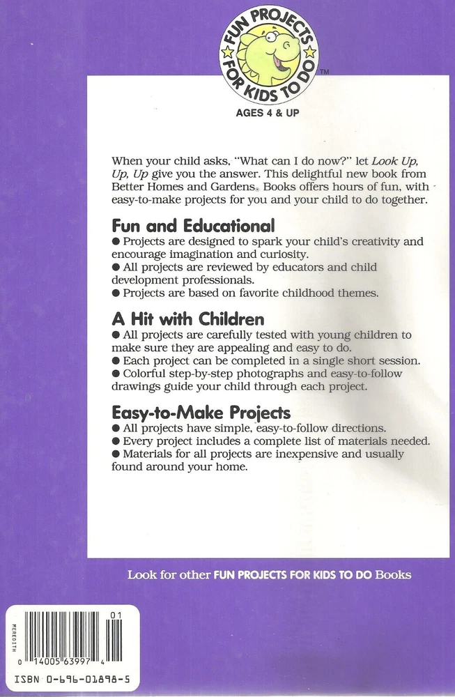 Welcome to 513.s.marino BETTER HOMES and GARDENS LOOK UP, UP, UP Arts, crafts, cooking, science, nature projects for kids. 32 PAGES VINTAGE © 1991 SHIPPING INCLUDES TRACKING NUMBER. PLEASE REQUEST INVOICE FOR SHIPPING DISCOUNT IF BUYING MORE THAN ONE ITEM! SHIPPING TIME: 1 BUSINESS DAY AFTER CLEARED PAYMENT IS RECEIVED. SMOKE & PET FREE HOME!