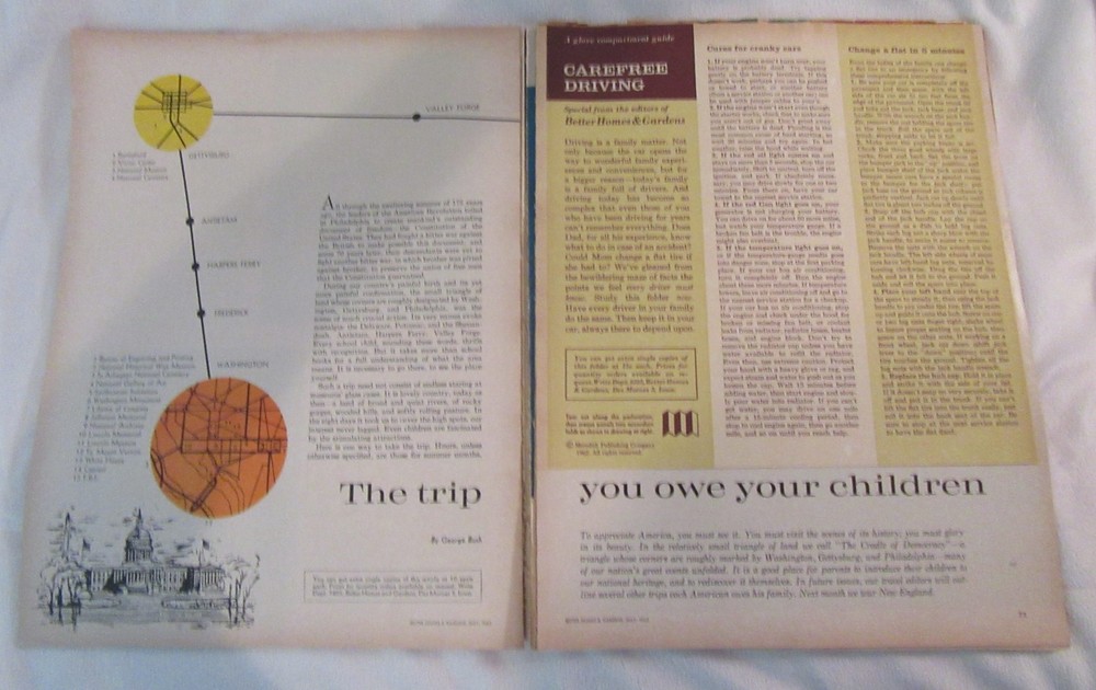 BETTER HOMES AND GARDENS ~MAY 1962~ GOOD CONDITION BETTER HOMES AND GARDENS ~MAY 1962~ GOOD CONDITION For sale is a Better Homes and Gardens magazine that was published in 1962. It is in good condition except for a separation in one place of the pages as shown. There are no folded pages, pencil or pen marks, or yellowed pages. There is a name label on the front. Combine auctions winnings and $ave on shipping!! If you buy more than one item please wait for me to you an invoice to get the savings because ebay does not combine shipping costs. Shipping will be highest cost plus just little more depending on the weight of the package. US bidders use the shipping calculator to figure shipping costs with Delivery Confirmation included. International shipping may be more than show on the shipping calculator due to the need to use different packing material for overseas shipments. Please wait for me to send an invoice International Buyers Please Note: Import duties, taxes and charges are not included in the item price or shipping charges. These charges are the buyer's responsibility. Please check with your country's customs office to determine what these additional costs will be prior to bidding/buying. If you buy more than one item please wait for me to send you an invoice to get the savings High bidders should respond to sellers email within 3 days of auctions close I prefer payment by PayPal and will ship within one day of receipt of payment. Payment must be received within 7 days of auction close unless notified of special circumstance Listing and template services provided by inkFrog