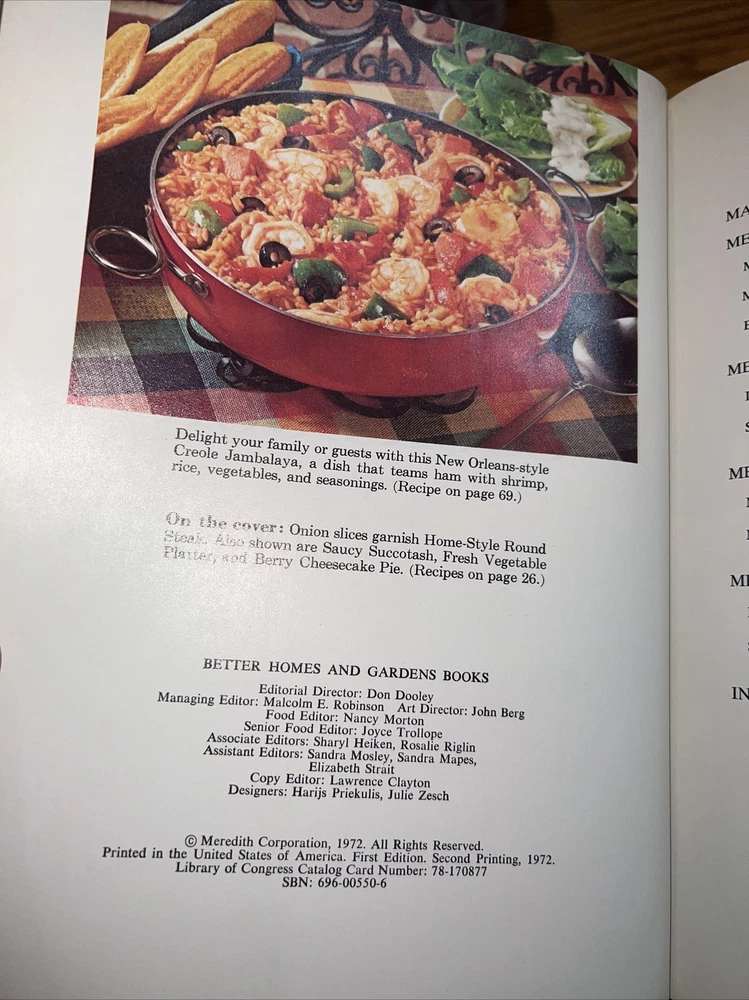 Shelf wear noted BETTER HOMES AND GARDENS MENU COOK BOOK 1972 1st/2nd....