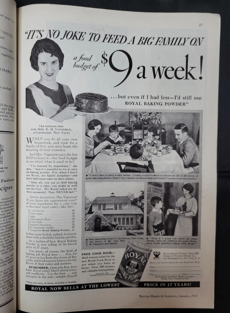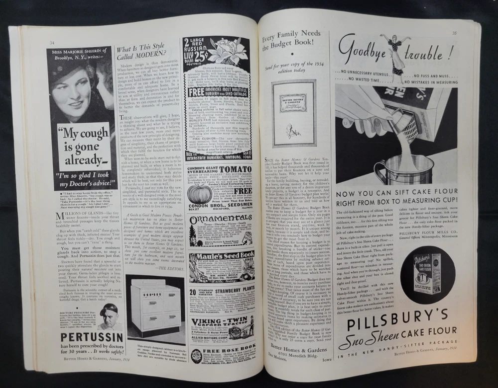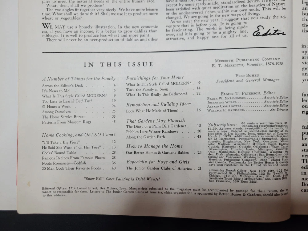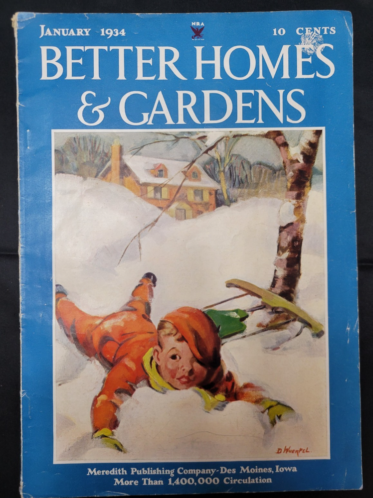 BETTER HOMES & GARDENS Magazine January 1934 Magazine is steeped in history and full of print ads. Please review all photos and zoom in for details. Item will come properly packaged which includes a plastic sleeve with backer along with other water proofing measures for it's safe journey from my home to yours.