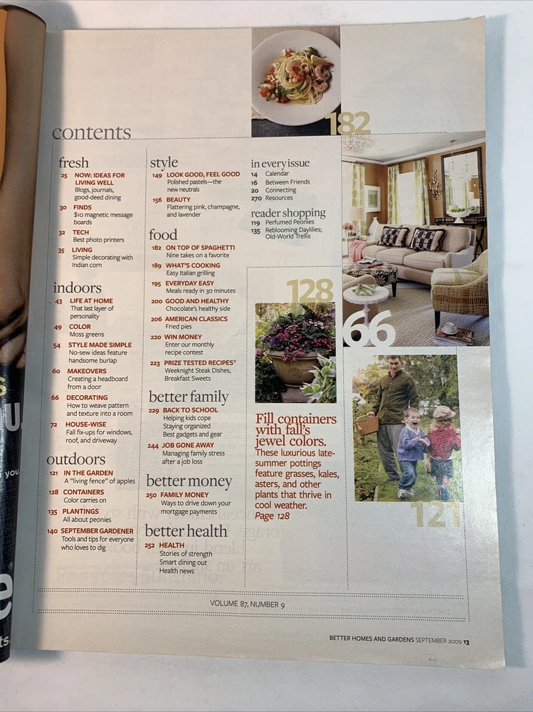 BETTER HOMES AND GARDENS Magazine SEPTEMBER 2009, 9 WAYS TO REINVENT YOUR ROOMS!