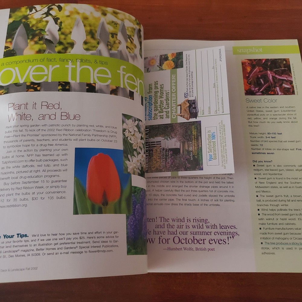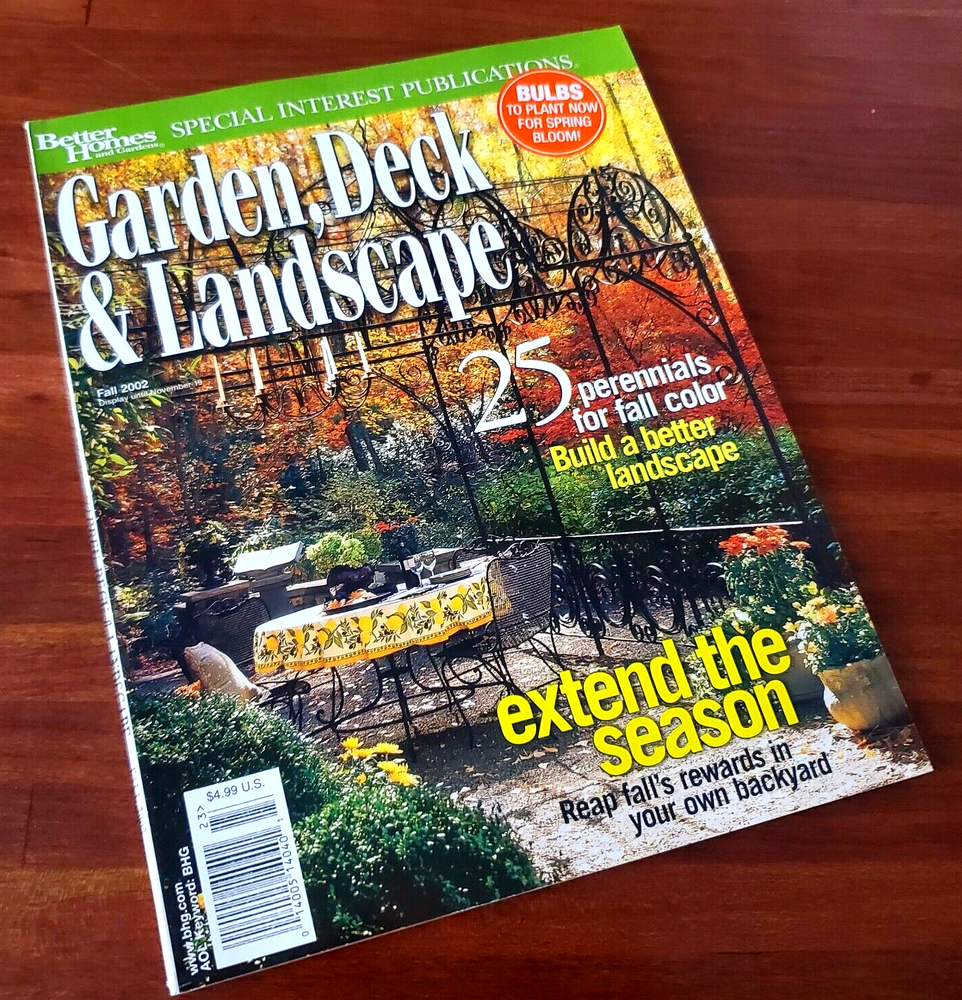 - BETTER HOMES - YOU GET THE MAGAZINE YOU SEE IN THE PICTURES - BETTER HOMES GARDEN DECK & LANDSCAPE FALL 2002 - VERY GOOD CONDITION - PLEASE READ ITEM CONDITION ABOVE FOR MORE DETAILS - SHIPPING IS FREE - APPROX SIZE IS 8.25in X 11.25in