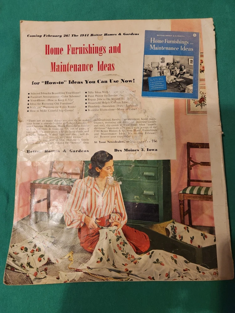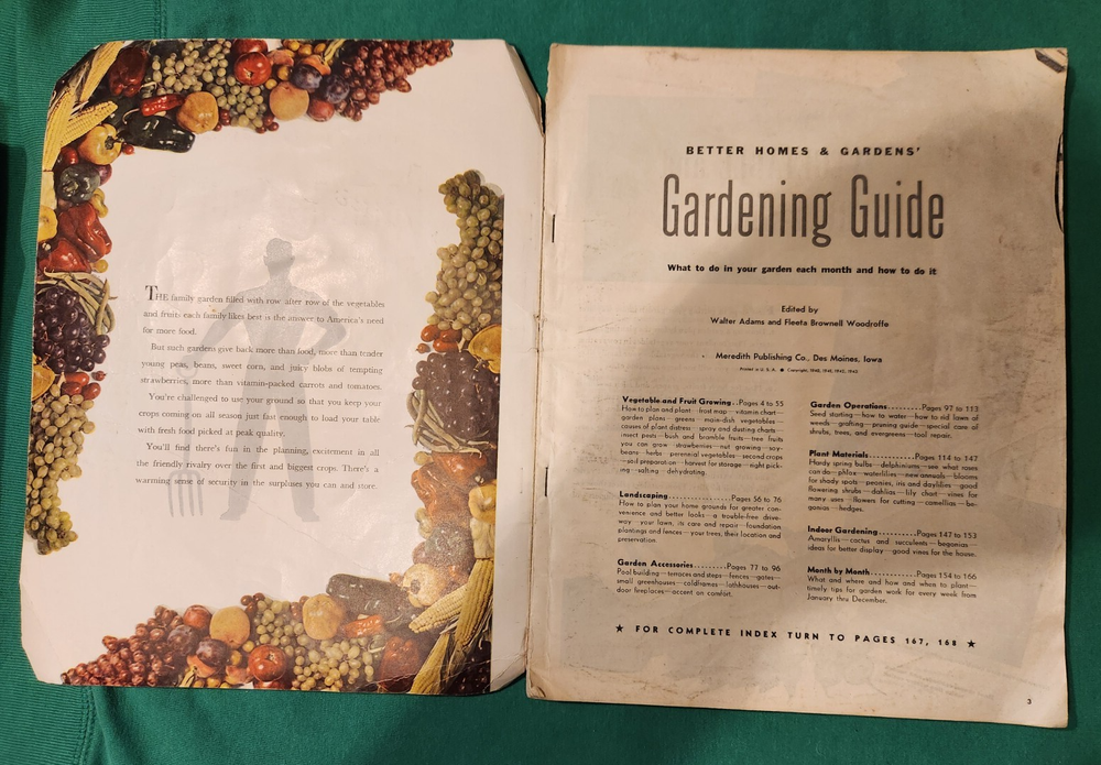 BETTER HOMES & GARDEN GARDENING GUIDE PUBLISHER: MEREDITH PUBLISHING PLACE – YEAR: DES MOINES – 1943 FORMAT: tMAGAZINE PAGES: 170 SIZE: 12.5 x 9.5 CONDITION: Minor cover wear, some spine wear, inside complete SHIPPING: Media Mail 1 Pound in a sturdy padded mailer More great old books like this from this collection listed in my store MORE BOOKS HERE