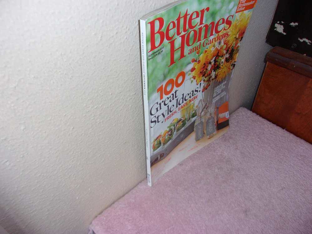 UP FOR SALE TODAY IS A LIKE SEPTEMBER, 2013 BACK ISSUE OF " BETTER HOMES & GARDENS " MONTHLY MAGAZINE.....SHOWS ALMOST NO SIGNS OF WEAR.....SEE PHOTO'S......>>>>>PRICED TO SELL<<<<<.....THANKS FOR STOPPING........(NB-MAG