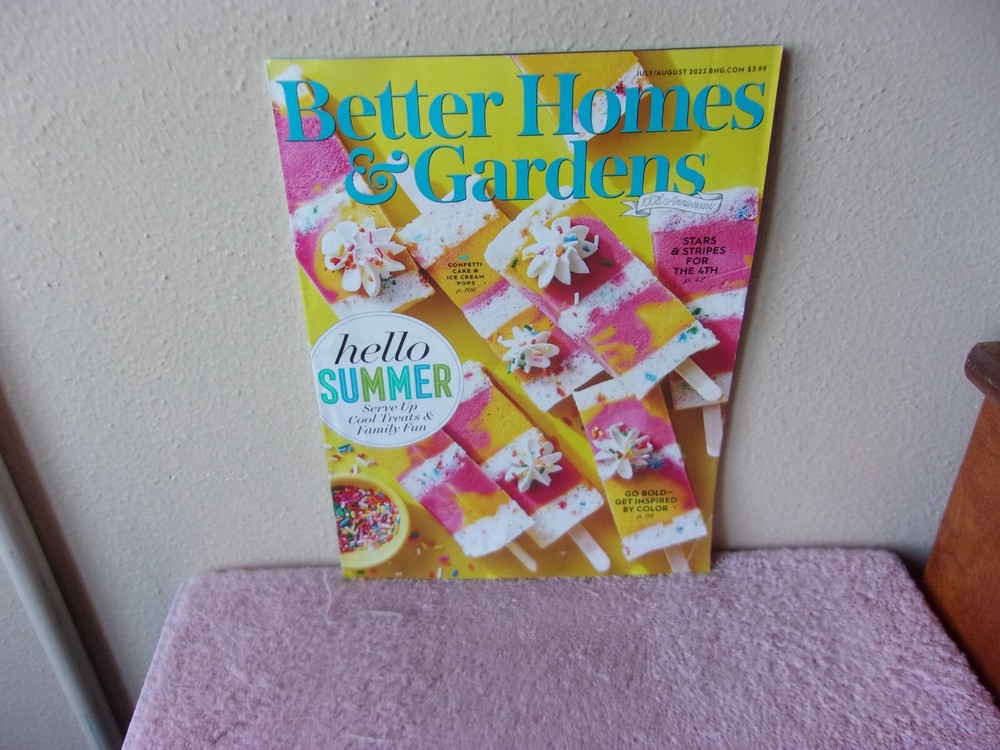 UP FOR SALE TODAY IS A LIKE NEW..JULY / AUGUST, 2022 BACK ISSUE OF " BETTER HOMES & GARDENS " MONTHLY MAGAZINE.....SHOWS ALMOST NO SIGNS OF WEAR.....SEE PHOTO'S......>>>>>PRICED TO SELL<<<<<.....THANKS FOR STOPPING........(NB=MAG)